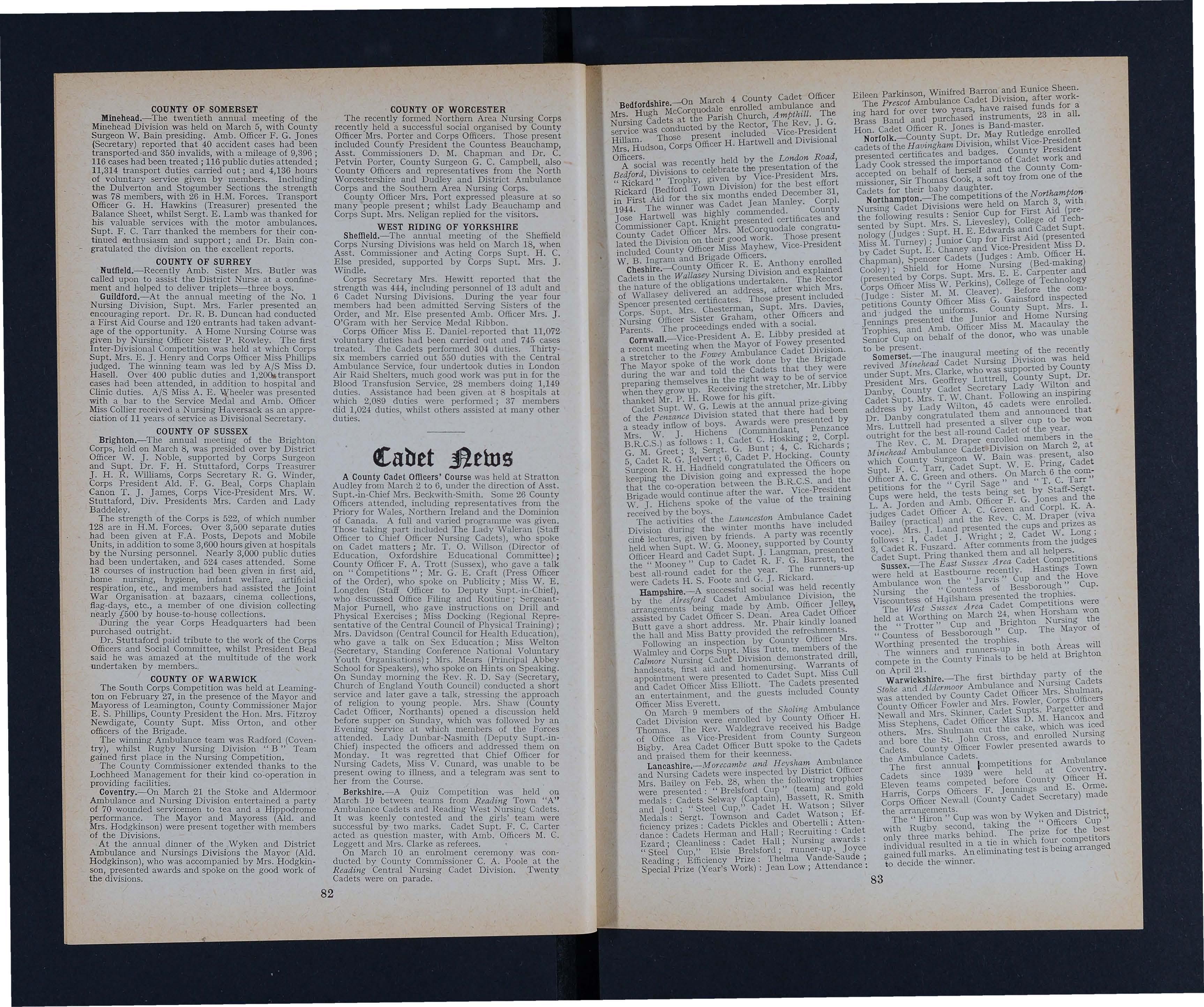 We also regret to announce the death of Mrs. R. C. Sarson, o f Paignton, whose work in the of th e sick a nd sufferin g was well known in Devonshire. Mrs Sarson joined t he Paignton Nursing Division in 1936, being appointed Secretary in 1939 . After gaining the L.A .RP : certificate, she was appointed Gas Officer in charge of the Cleans ing Section at the F.A. Post. In 1943 she was appointed Co unty Secretary of the Association , and after acting as Secretary to the County Commissioner for three years was appointed County Brigade Secretary in 1944. She carried out many self-imposed d u ties in a highly efficie nt and unobtnisive manner, rendering valuable service t o the community among whom s he lived. The' estee m in which she was held was manifest at the funeral, when, in addition to St. J ohn, many oth er organisations were represent ed.