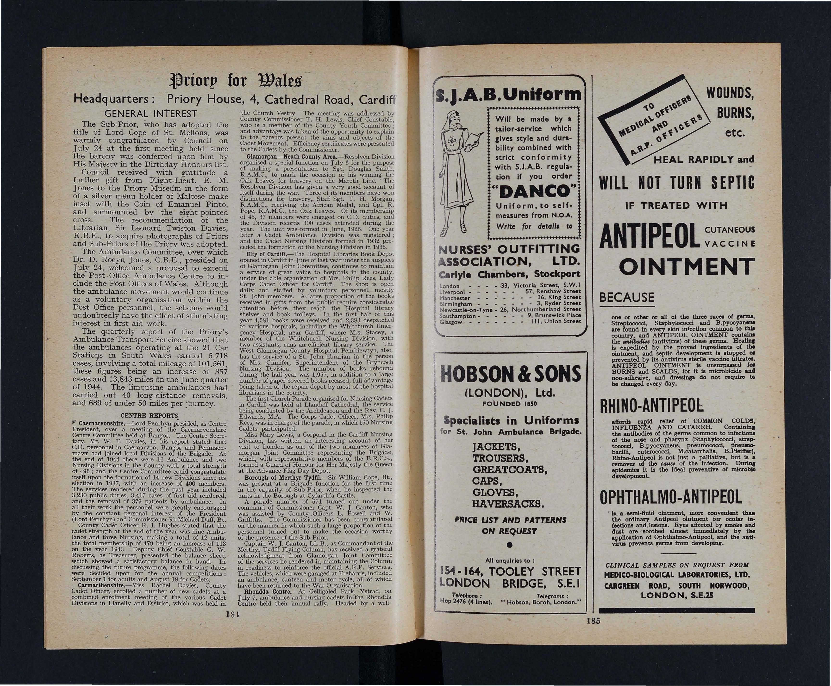 S.J.A. REGULATION HAT for Officers, Wool Felt, 18/6. Ambulance Sisters. Felt, 18/6. Box and postage I /6. Badges are only obtainable from H Q.