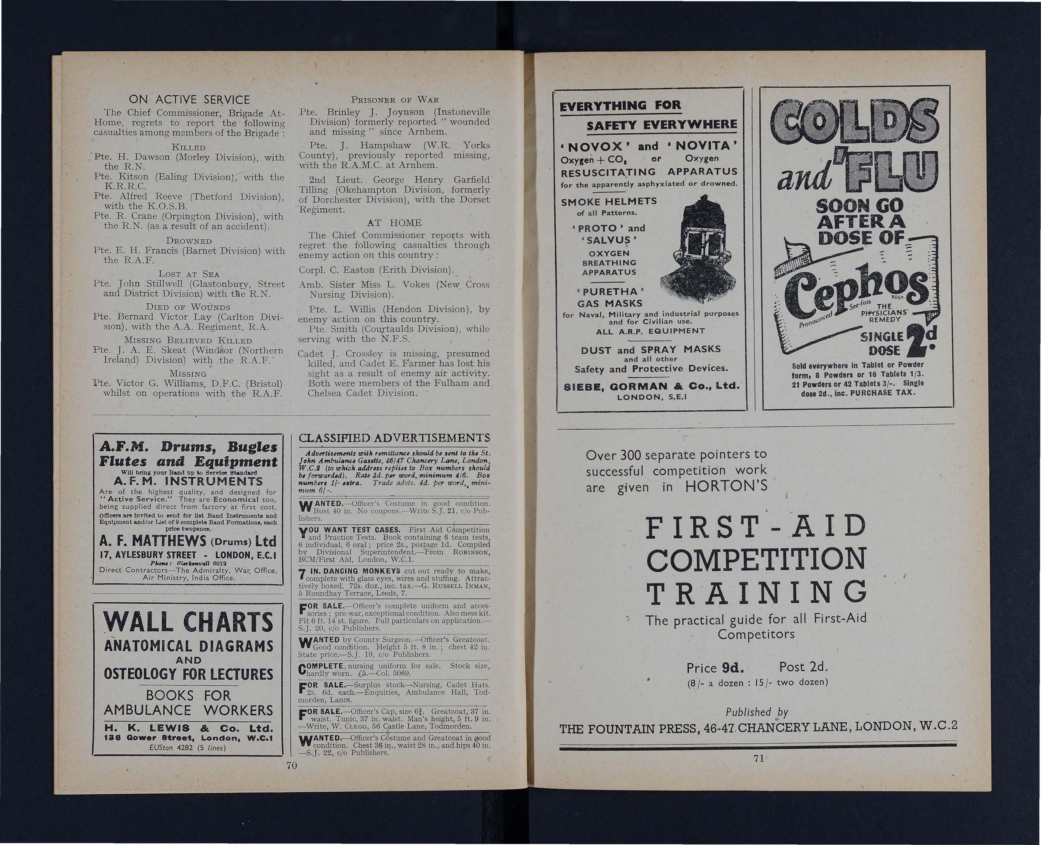 Advn-tisnnetUs with remittanee should be sent tc the St John Ambulance Ga..ette, 46/47 Chancery Lane, London, W.C.2 (to which address replies to Box numbers should be forwarded) Rate 3d. per word, min imum 4/8 Box numbers 1/- extra. Trade advts. 4d. Pd word, mini· mum 6/-.
