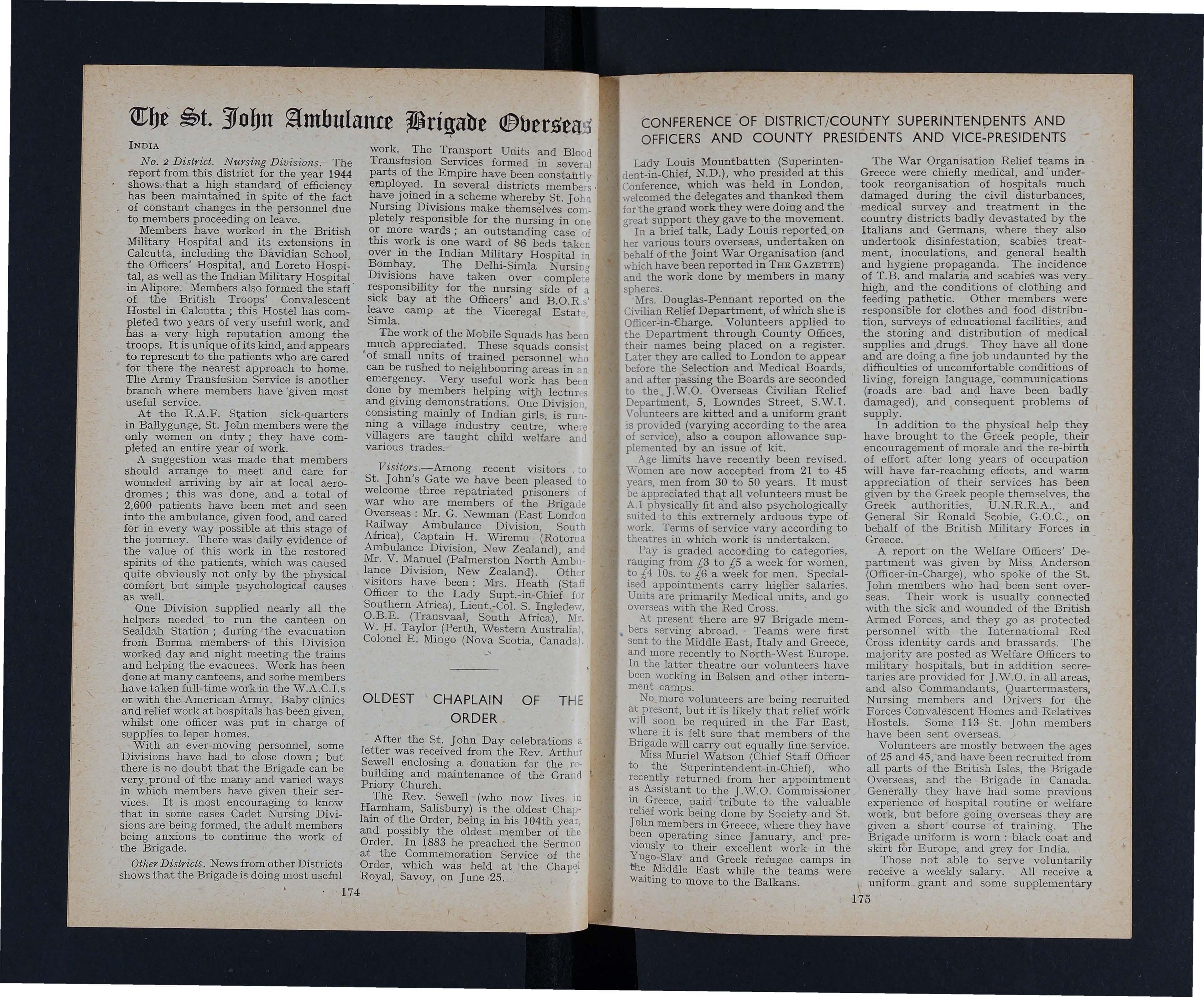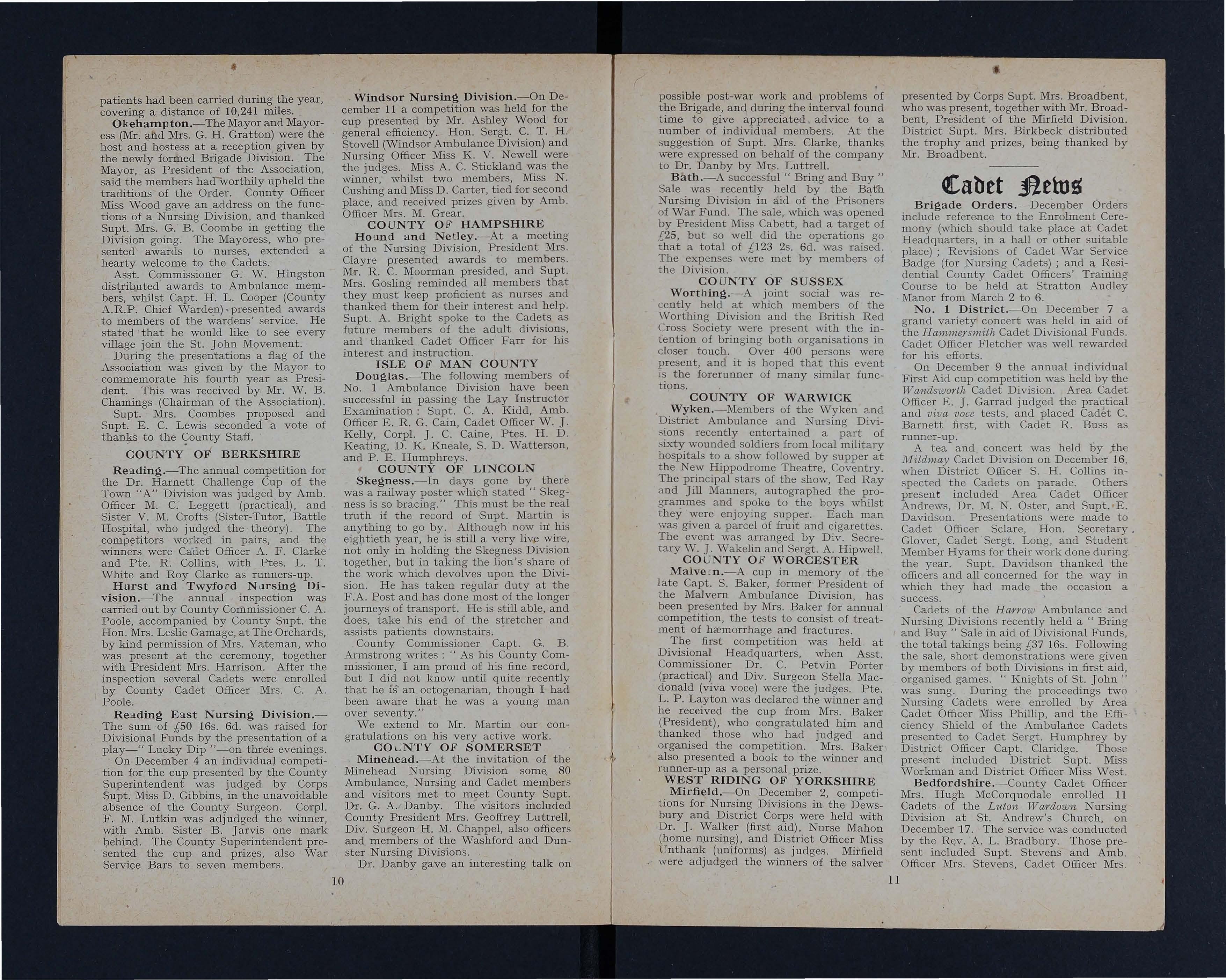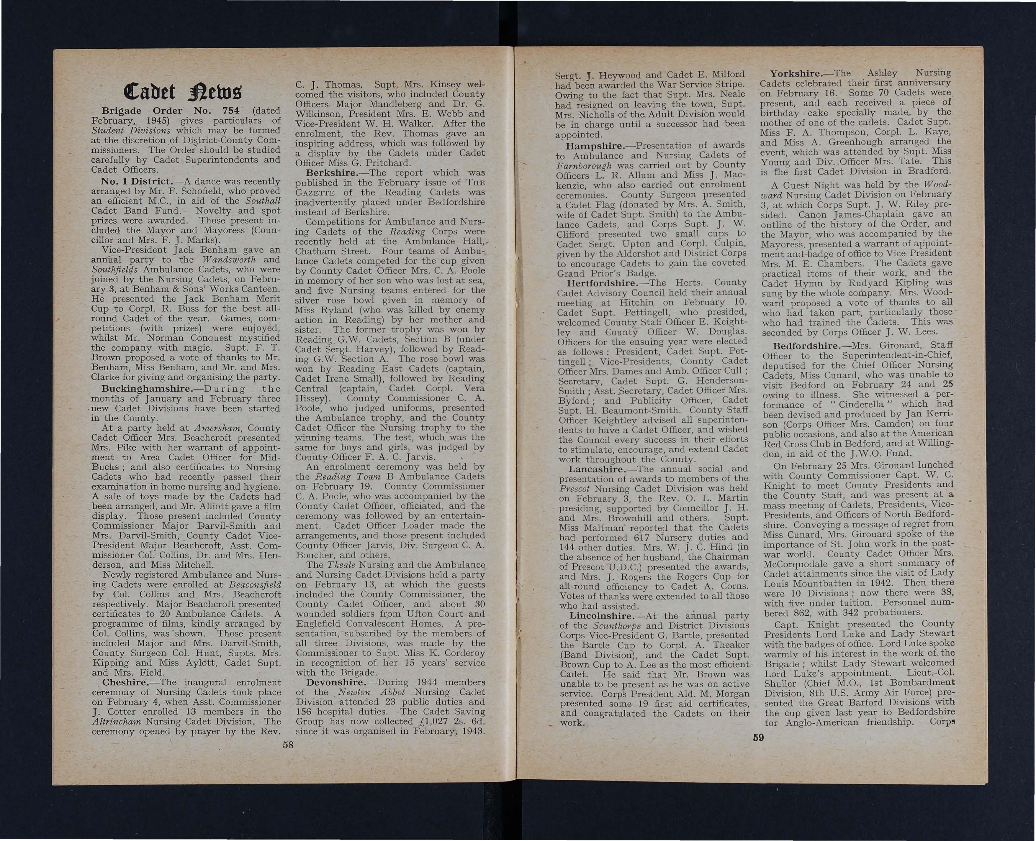 Divisions) for W.R Yorks hire , and in D ecember, 1943, b ecame County Cadet Offic er. On Feb ru a ry 16, 1934 , she was appointed Dame Grand Cro ss of the Order, having gained the Service Medal in 1932 . Her other activities Organiser and Administrator of the Mountgarret Hospital, Chairman of the Ladies' Linen Guild of the Order, and was County Controller for Middlesex V.A.D.s for many years. Lady Mountgarret will be greatly missed , a nd th e Brigade has lost a good friend.