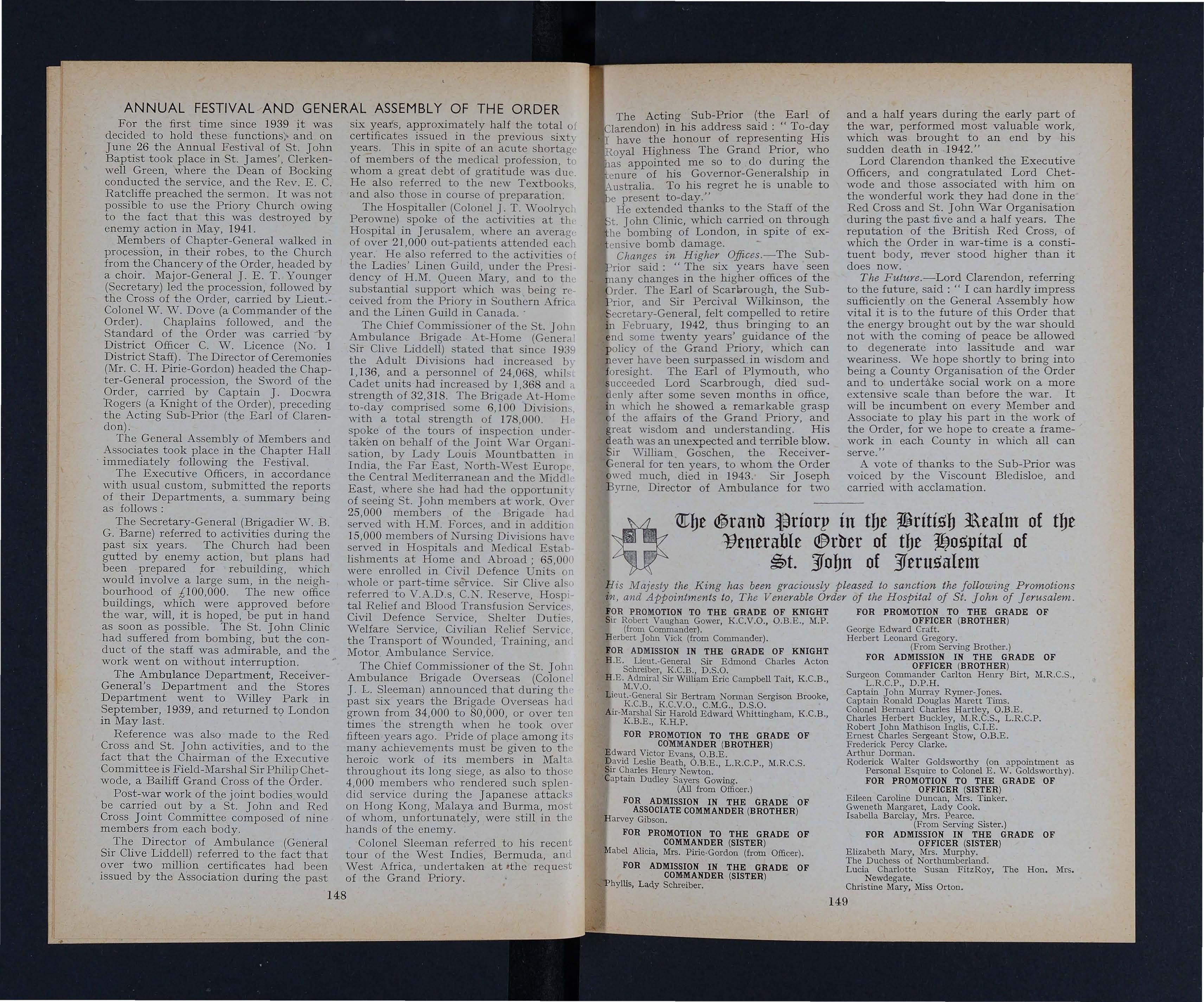 And now for t h e future . It is to be hoped t hat peace ' v1 ll be with u , and, G o d w illing, at no distant d ate. \ V'e m ust not l eave it to the otb er fellow to ge f on wit h the j o b , b ut p u t OUf sho u lders to the w h ee l and give of o ur best, n ever rel ax ing our ac ti v ities until th e fina l vic t ory is won. During the year of war , the activi ties of t h e Order have increased, After the war there will b e m any oth er activ i ties in w hi ch t h e members of th e Brigade wi ll be call ed u pon to assist. can b e no s lack in g; no p u tting off u nti l another d ay. Vile mu s t p r epare n ow f or th e peace a nd un de r stan d in g be t ween a ll nati ons for w hi ch we a r e fi g btin g. This ca n onl y b e d one b y th e co-operatio n b e t ween a ll ran ks; a n d ' we are s ure th a t me mb ers A t-H o m e an d Ove rs eas w ill n ot fai l in this .