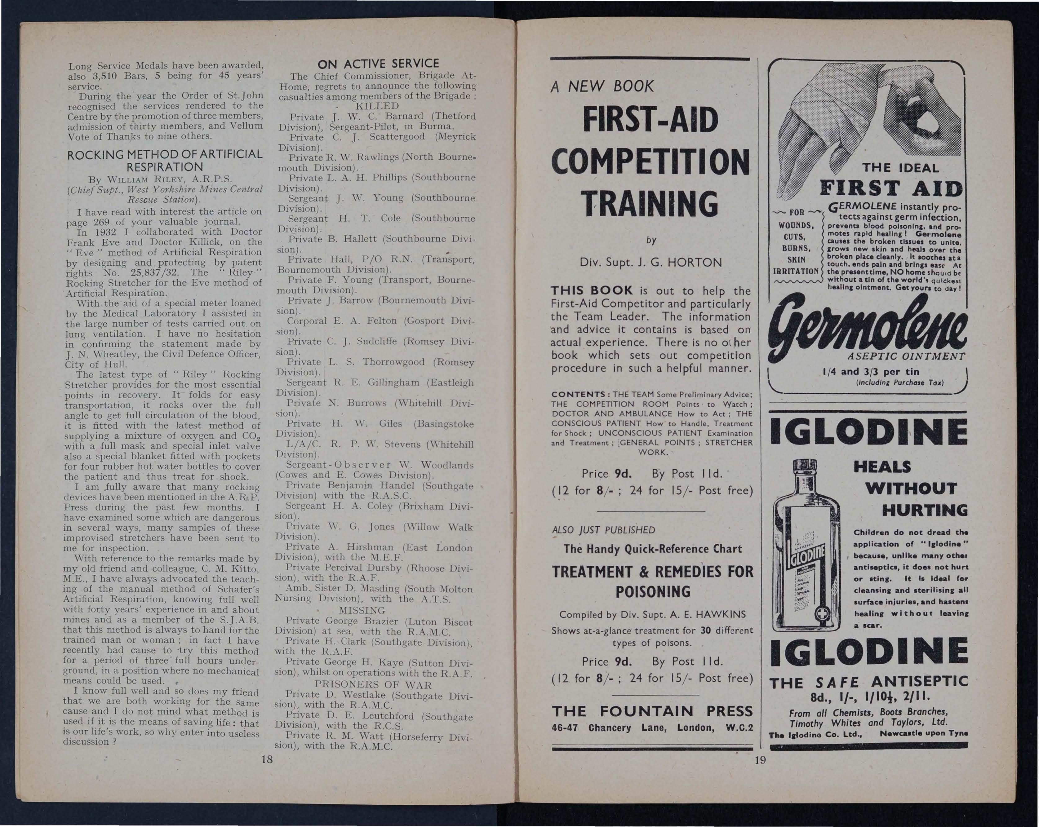 FIRST-AID Competition Training, by J G. Horton· Notes fo r the Guidance of Competitors, 9d. post free ll d.-FoUNTAIN PRES S, 46, Chancery L ane, London, W.C 2.