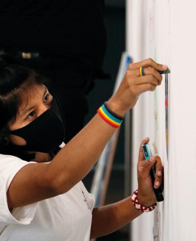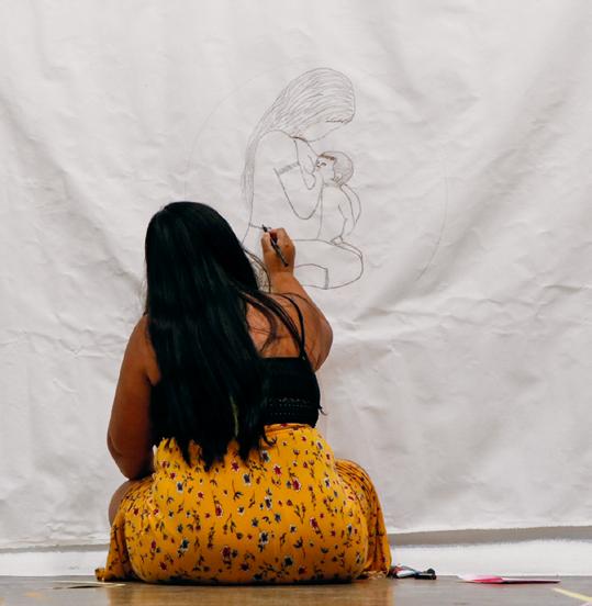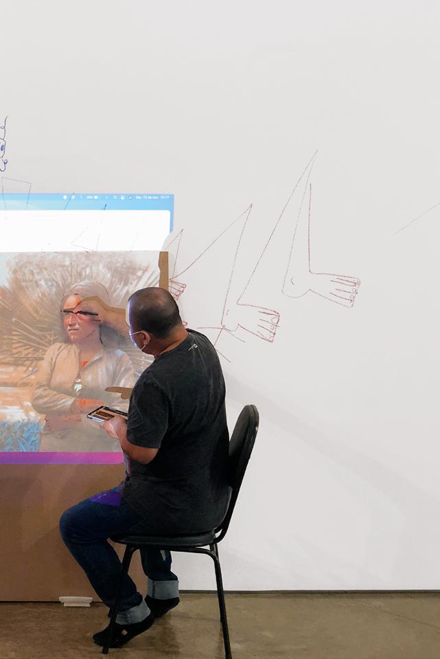 mesmo de sonhos, o ateliê/oficina foi se configurando. Foram surgindo desenhos e pinturas em painéis, mas também nas paredes da sala expositiva, além de áudios e novas fotografias. Ao final do período de duração do museu-ateliê, os artistas e equipe do MUPA decidiram apresentar os resultados dessa vivência na exposição Retomada da Imagem, inaugurada em 16 de dezembro de 2021, que ficou em cartaz por um mês.