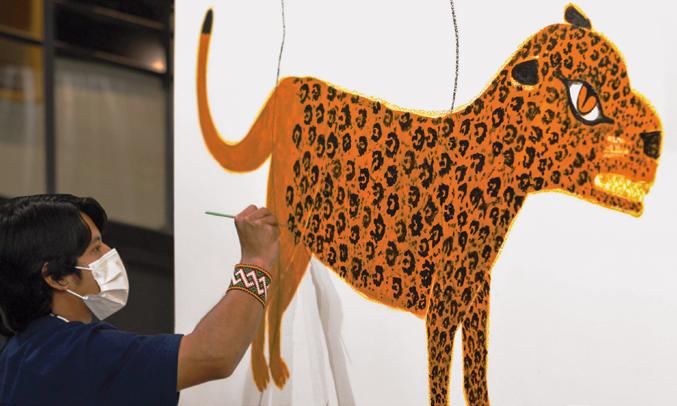 Denilson Baniwa. Etapa museu-ateliê da Retomada da Imagem, Museu Paranaense, novembro de 2021.