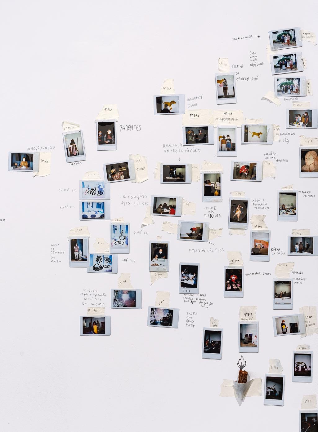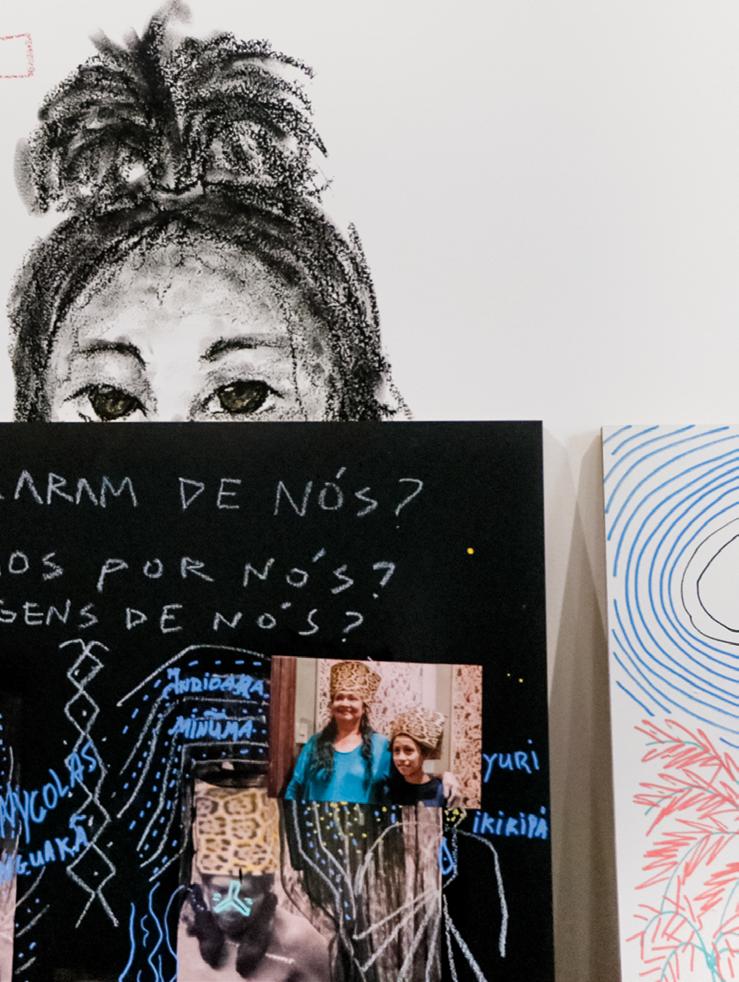 Junto às pinturas e demais criações, foram acrescentadas à exposição fotografias e objetos tridimensionais do acervo. Esse interesse, comunicado por Gustavo Caboco, de envolver na mostra não somente aquilo que foi produzido de novo, mas também fotografias e outras peças que motivaram os seus parceiros indígenas, fomentou questionamentos importantes. O principal deles dizia respeito a como esses objetos do acervo seriam apresentados.