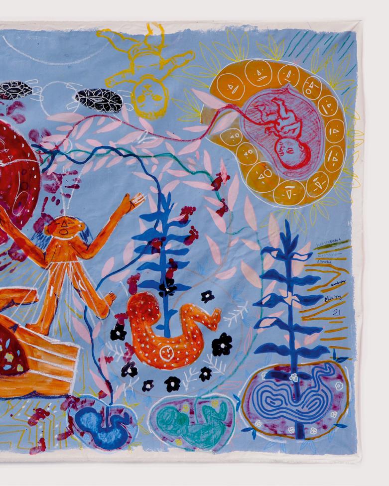 O nosso início, nossa cura, 2021 Acrílica e colagem sobre tela.