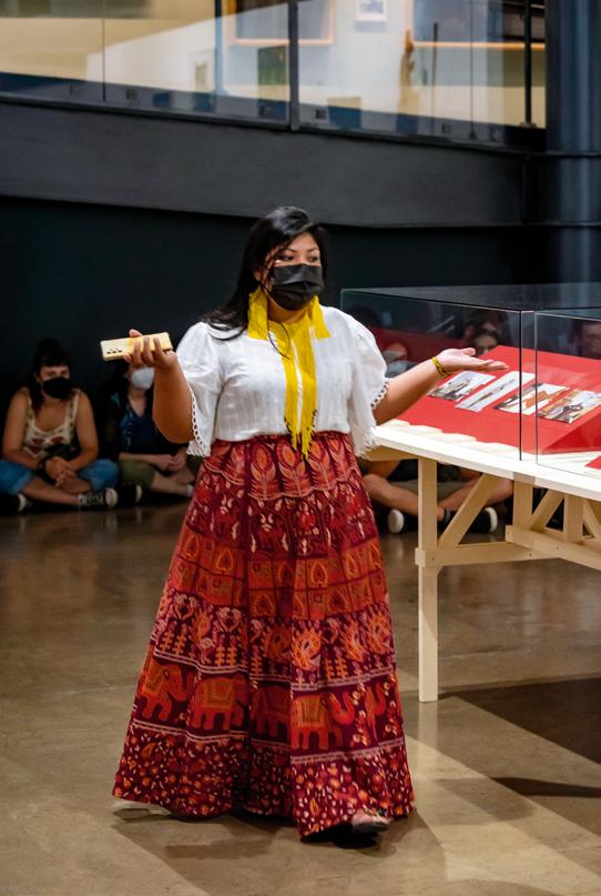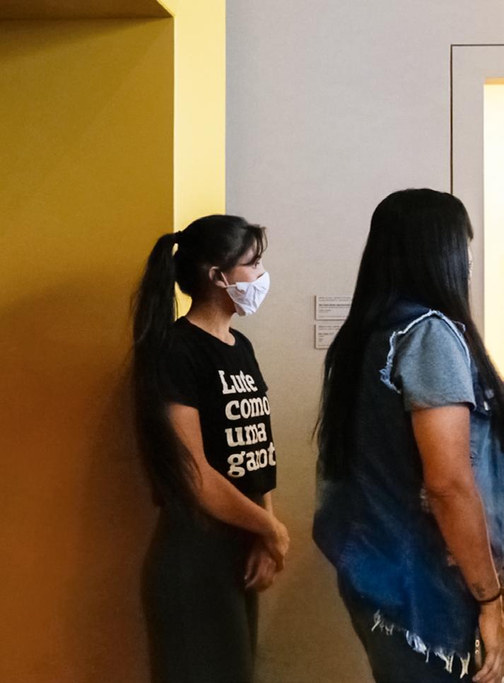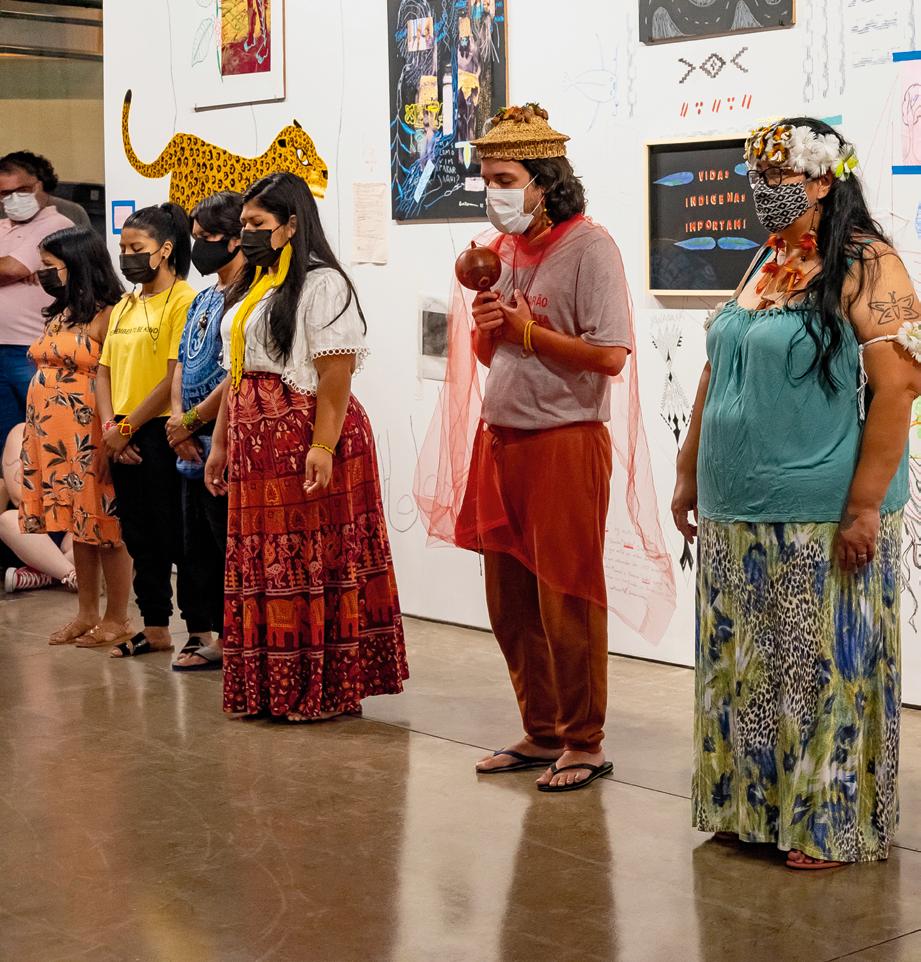 Os acontecimentos que marcaram a abertura e o encerramento da mostra foram momentos de muita potência e emoção. Com a sala expositiva repleta de jovens, adultos e crianças, Denilson Baniwa, Gustavo Caboco, Camila dos Santos, Juliana Kerexu, Indiamara Paraná e Lucilene Wapichana compartilharam com o público, por meio de cantos, poesias e relatos, parte dos sentimentos e das reflexões que o encontro com as fotografias suscitou. Esse trecho da fala de Camila dos Santos na abertura da exposição (integralmente transcrito na publicação) traz a dimensão da multiplicidade de afetações que a experiência do projeto provocou nela, situa a importância disso no contexto mais amplo das subjetividades, políticas e poéticas dos povos indígenas e informa, mais especificamente, a potência dos acervos como método de memória, luta, criatividade e dignidade, na franqueza do encontro com eles, que é ao mesmo tempo um disparador de dor, de transformação e de cura: