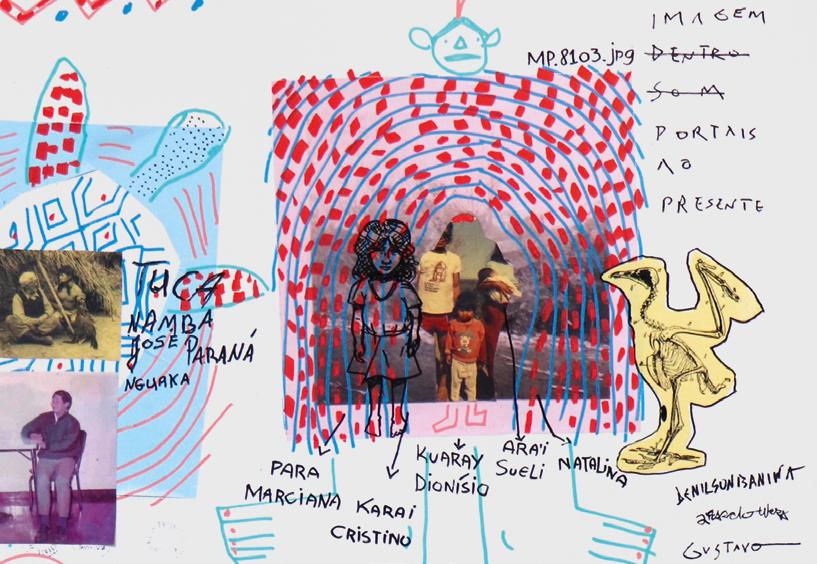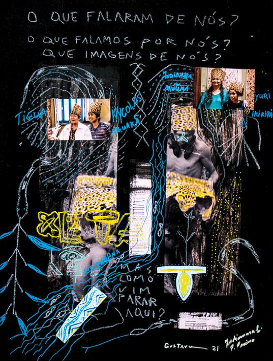 “É o que estamos fazendo agora também? Tentando reconstruir? Reconstruir é reproduzir os mesmos métodos do passado? Ou vamos criar coisas novas? Que tipo de imagem vamos criar agora, Gustavo, juntos? Por estarmos chamando pra conversar, para sentar numa espécie de fogueira... estamos criando um tempo (chuvoso, calor, ameno, tropical), estamos tentando criar um clima de coexistência entre mundos: os nossos, o do museu, o dos antigos e o do presente dos indígenas também.”