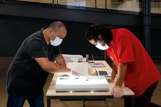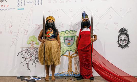 Gustavo Caboco e Denilson Baniwa. Etapa museu-ateliê da Retomada da Imagem, Museu Paranaense, novembro de 2021.