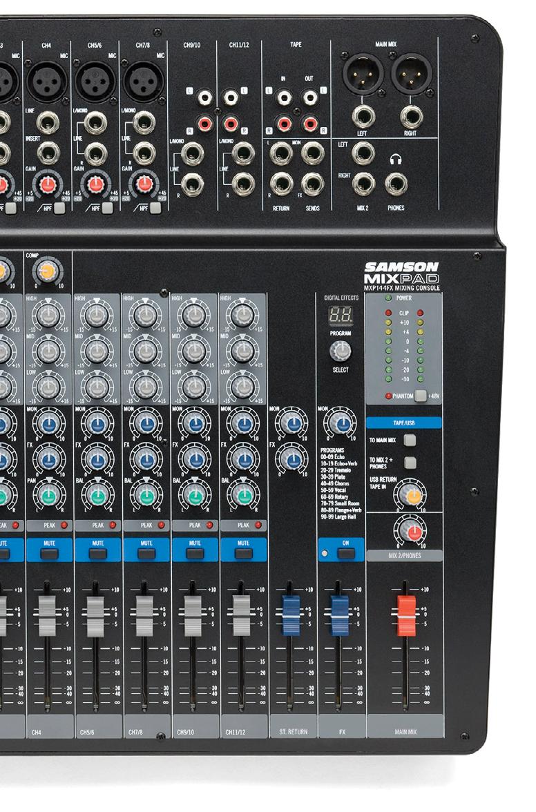 • Entrada de instrumento P10 (1/4”) com nível de mixagem