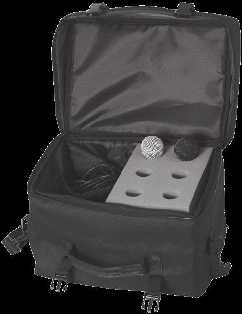 • Inclui presilha para microfone e estojo de transporte