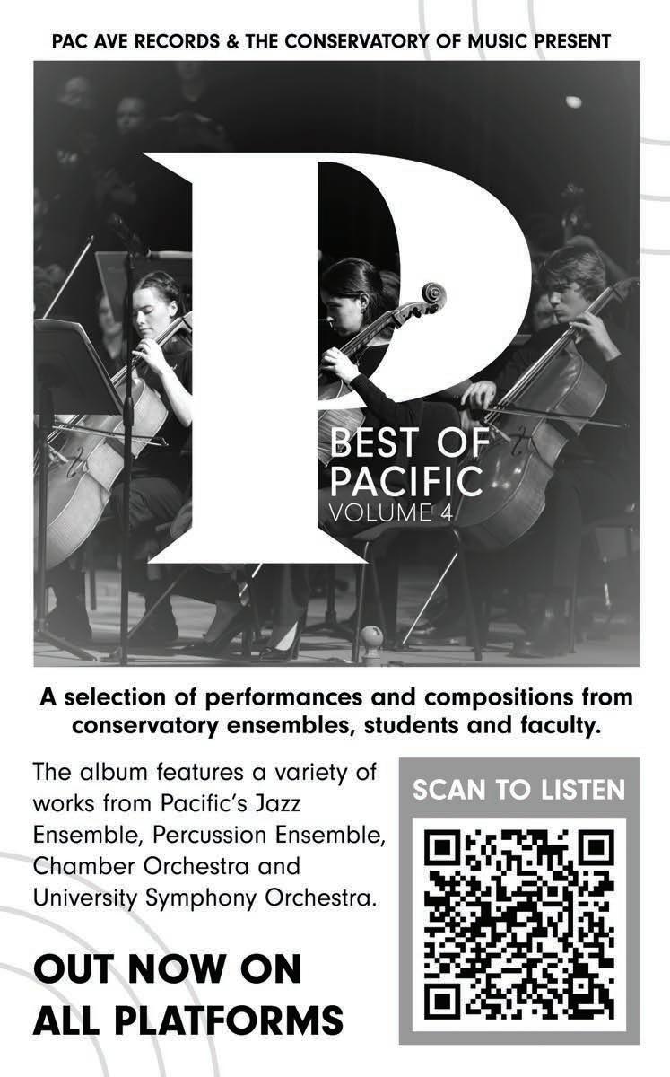 To view our upcoming events, scan the QR code or visit Pacific.edu/MusicEvents.