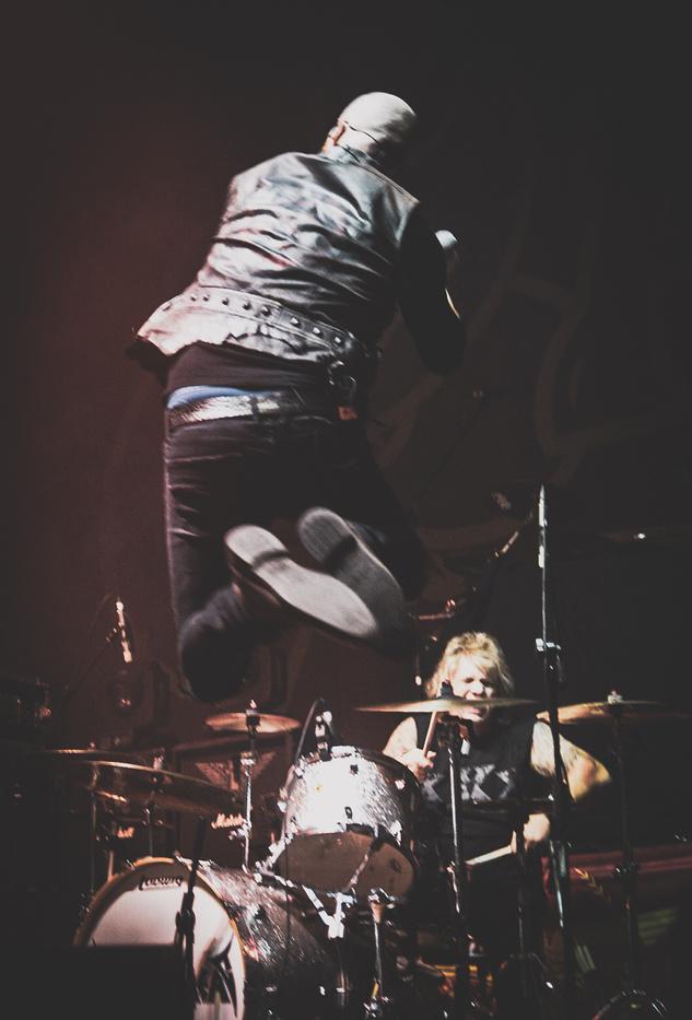 After belting out 'Age of Steel', Saxon frontman Biff said, "This is one of our favourite city's....NEWCASTLE." he then went on to ask, "Where are all the f****ng seats?" a nod to the recent renovation of O2 Newcastle City Hall which has seen the seating in the stalls upgraded, enabling the venue to remove them for gigs.