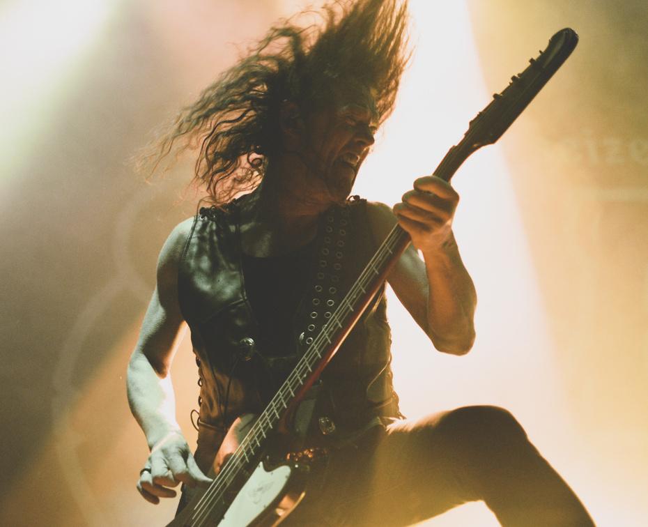The lights dimmed, and the openers Diamond Head took the stage. Singer Rasmus Andersen was full of energy and really got the crowd going. A band that has a huge following in their own right, Diamond Head put on an awesome set for the Newcastle crowd. Playing a seven track set, they definitely had more than enough stage presence. Rasmus at one point climbed the balcony during the show to say hi to the fans above the stage. In a later social media post, the vocalist did mention that the venue management wasn't best pleased with his stage antics, but the crowd lapped it up. Encouraging the audience to get their horns up, the crowd obliged and rocked out.