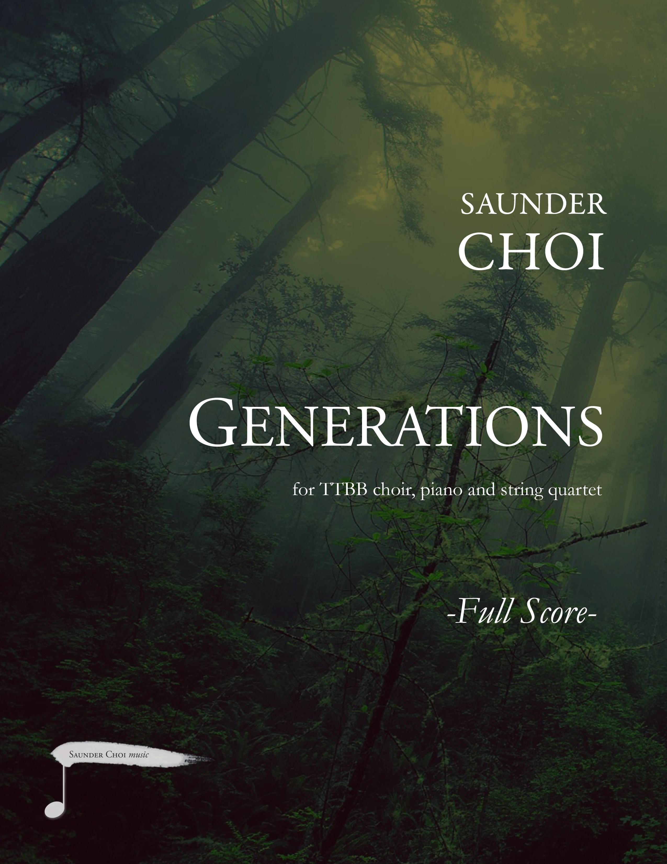 Generations is a setting of poetry by Brian Sonia-Wallace (@rentpoet) for TTBB voices, piano and string quartet. This piece is written to honor members of the LGBTQIAx community who came out before us and paved the way for the liberties and rights we are able to enjoy today, recognizing that there is still much work to do.