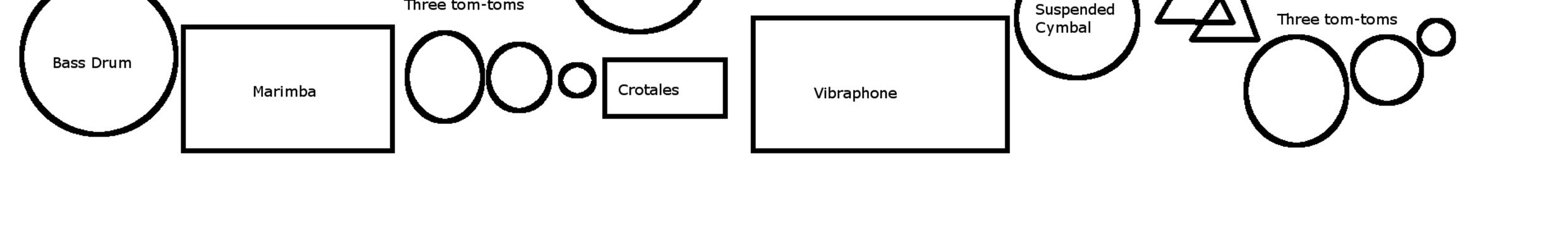 While there are many possible ways of setting up the instruments to allow for each to be reached as needed, one possible setup is shown below. (Depending on staging and location of singers, harp, soloists, this can be modified as needed):