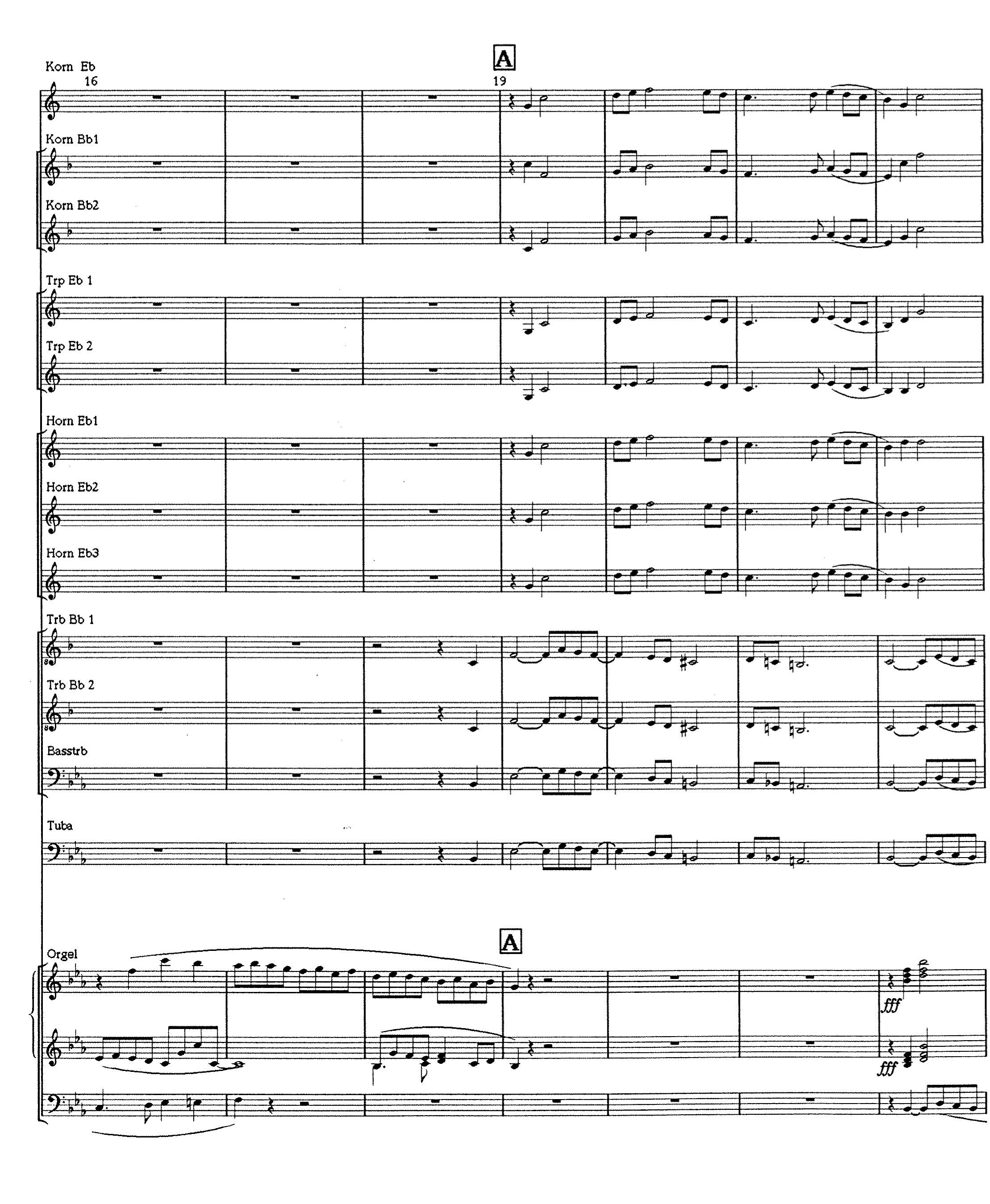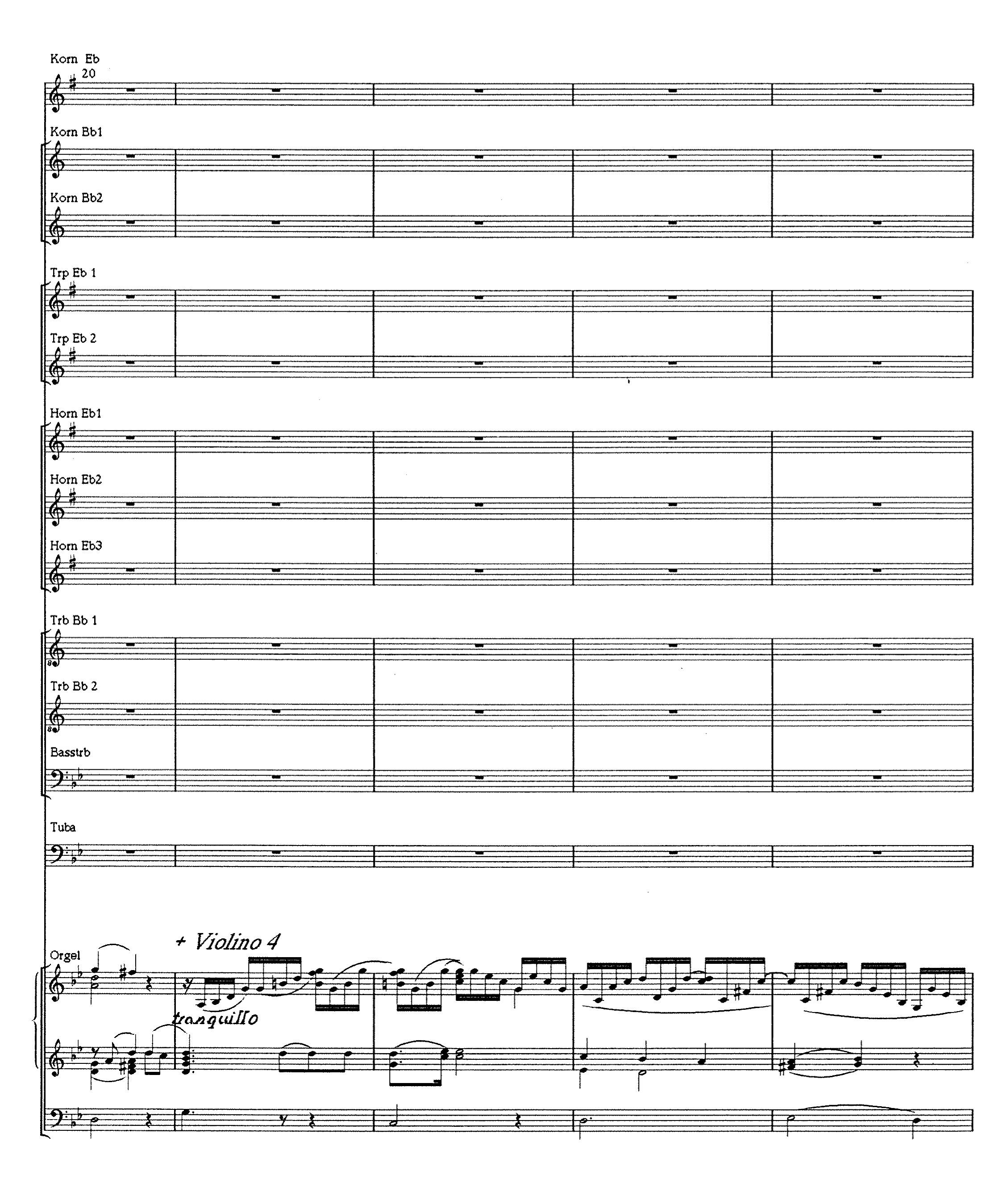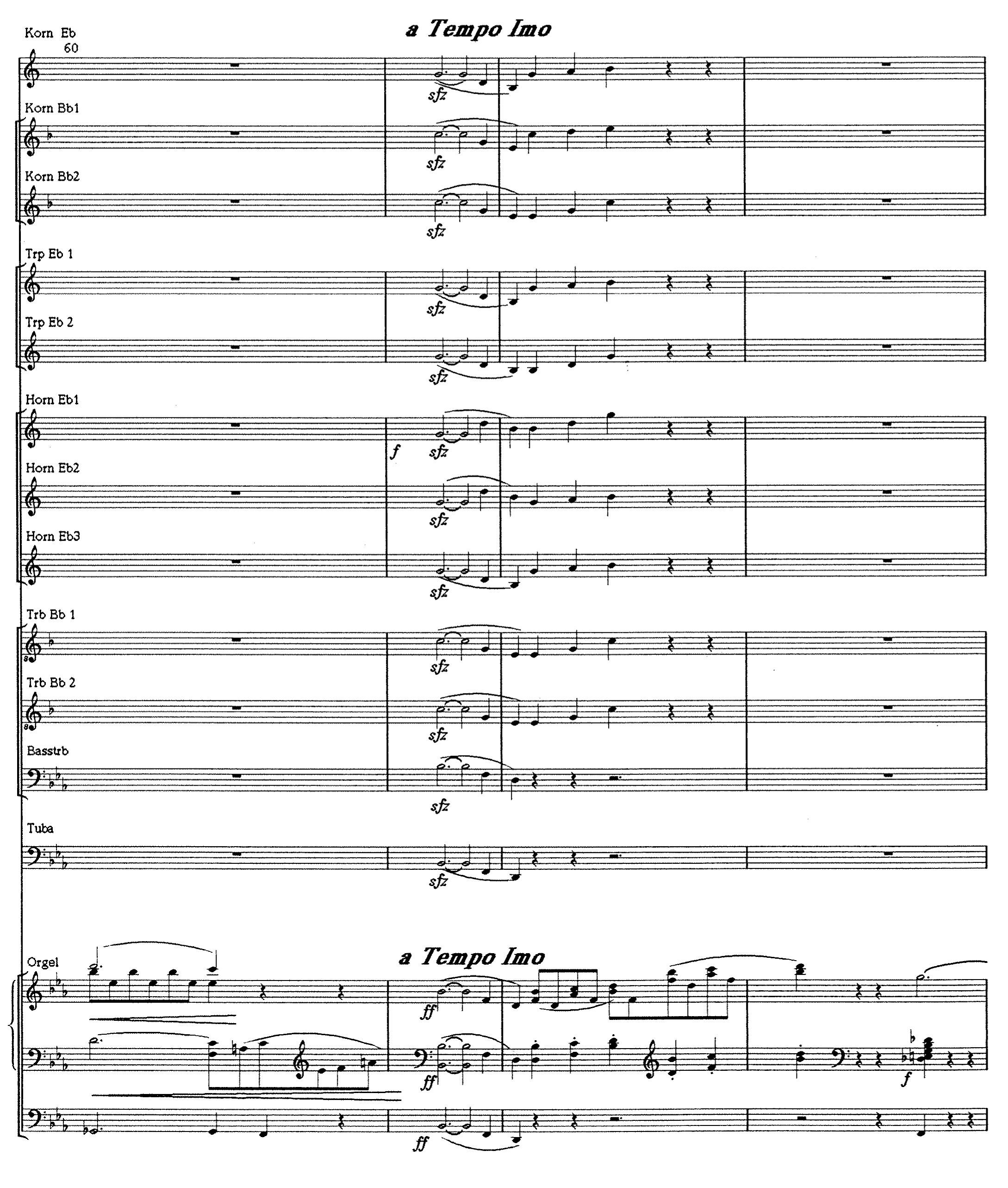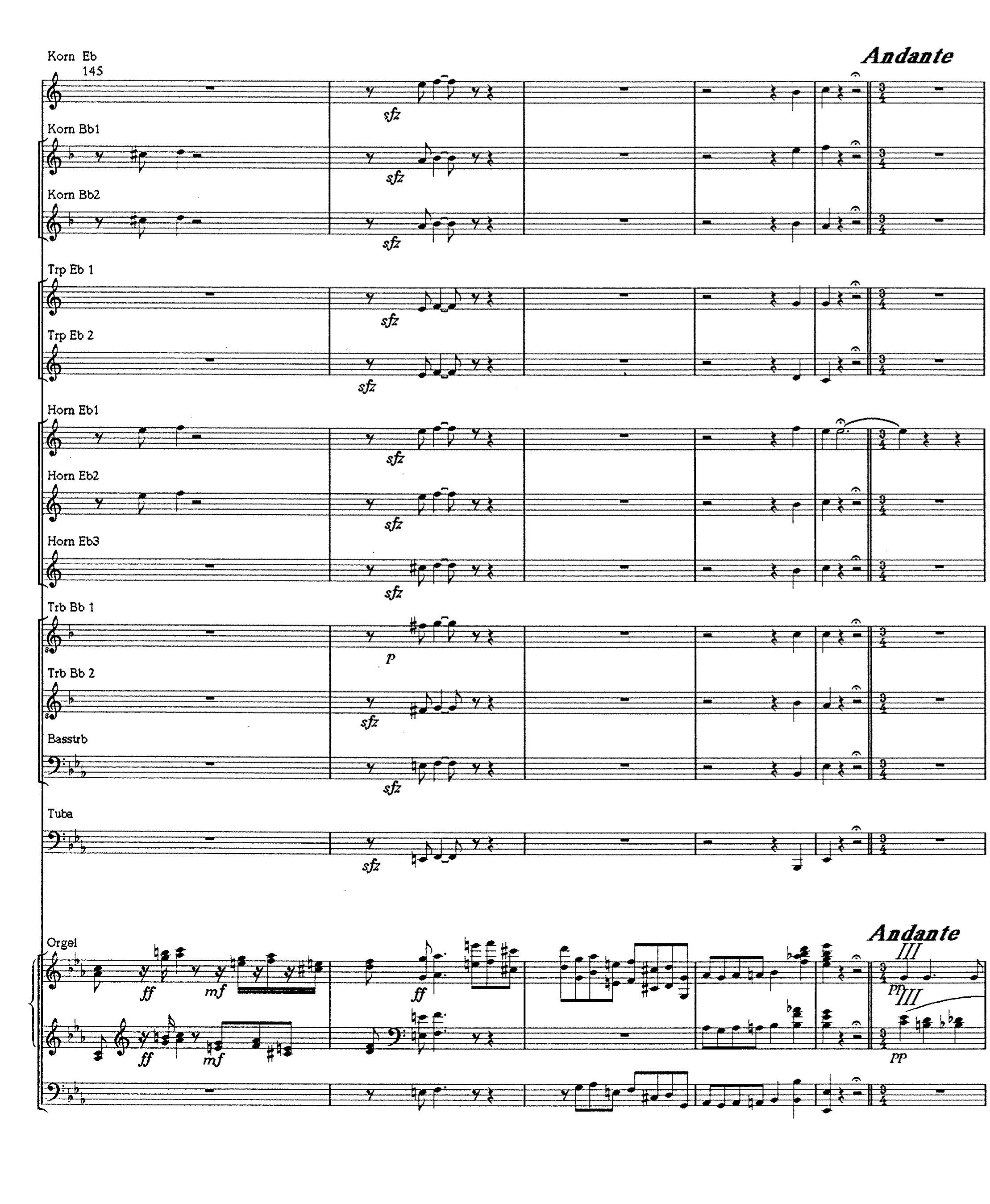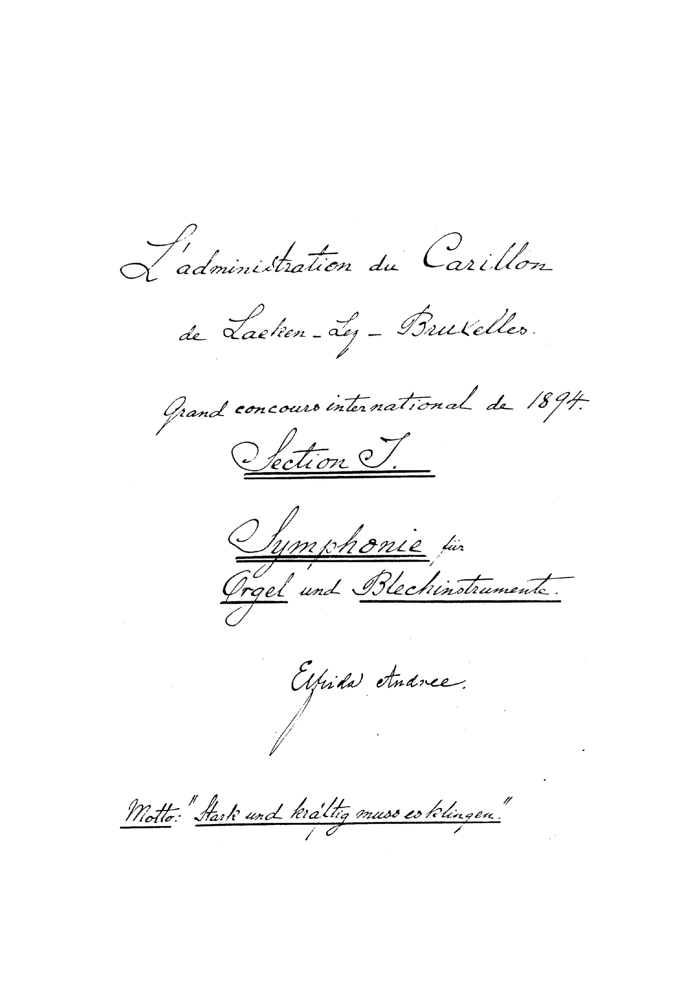 Verket er fra Elfrida Andrées hånd en omarbeidelse av sonate nr. 2 for fiolin og klaver, og ble premiert ved en internasjonal komposisjonskonkurranse i Bruxelles i 1894. I denne utgaven er Elfrida Andrées notasjon fulgt nesten helt ut, bare tydelige utslag av arbeidstempoet er rettet opp, som i Finalen: Andantino i blåserne og Andante i orgelet er utjevnet til Andante. Blåsestemmene er tilpasset dagens messingensembler.