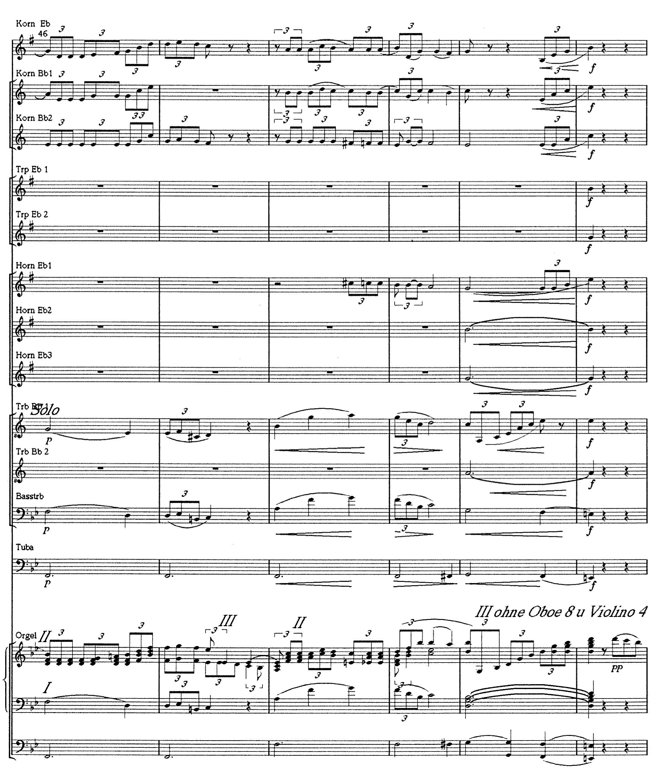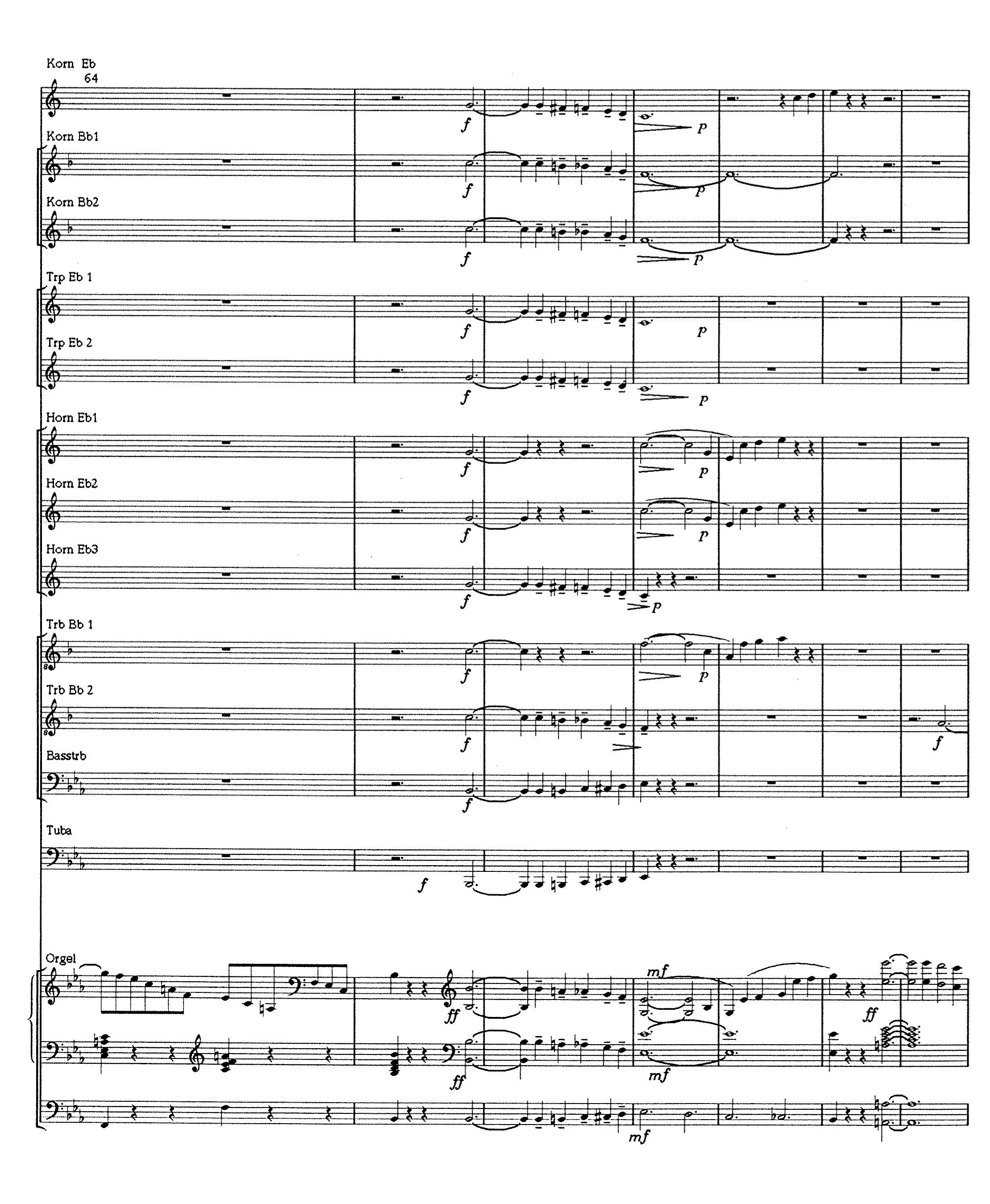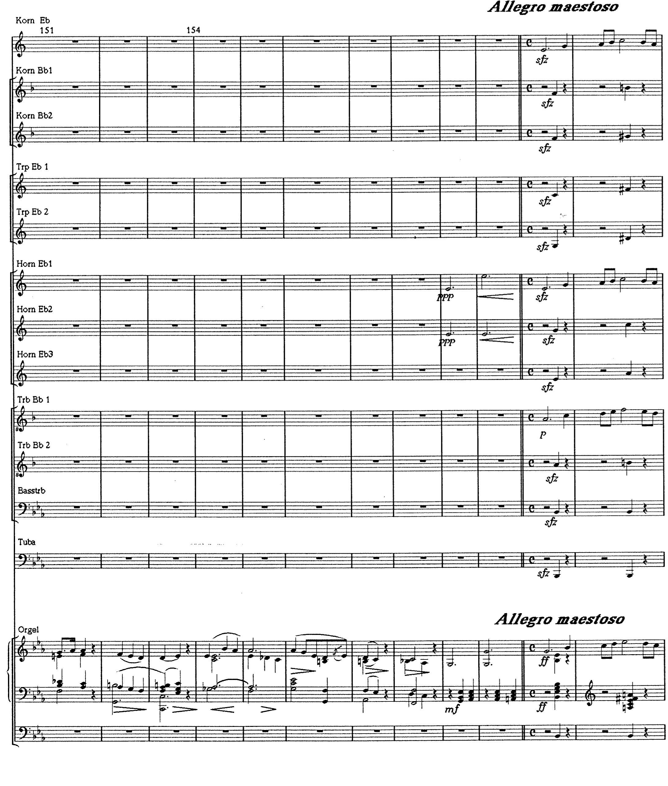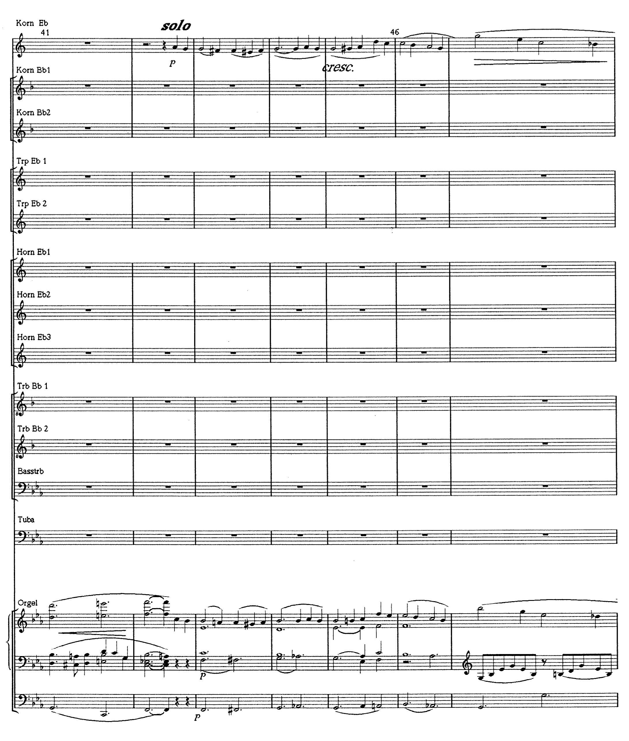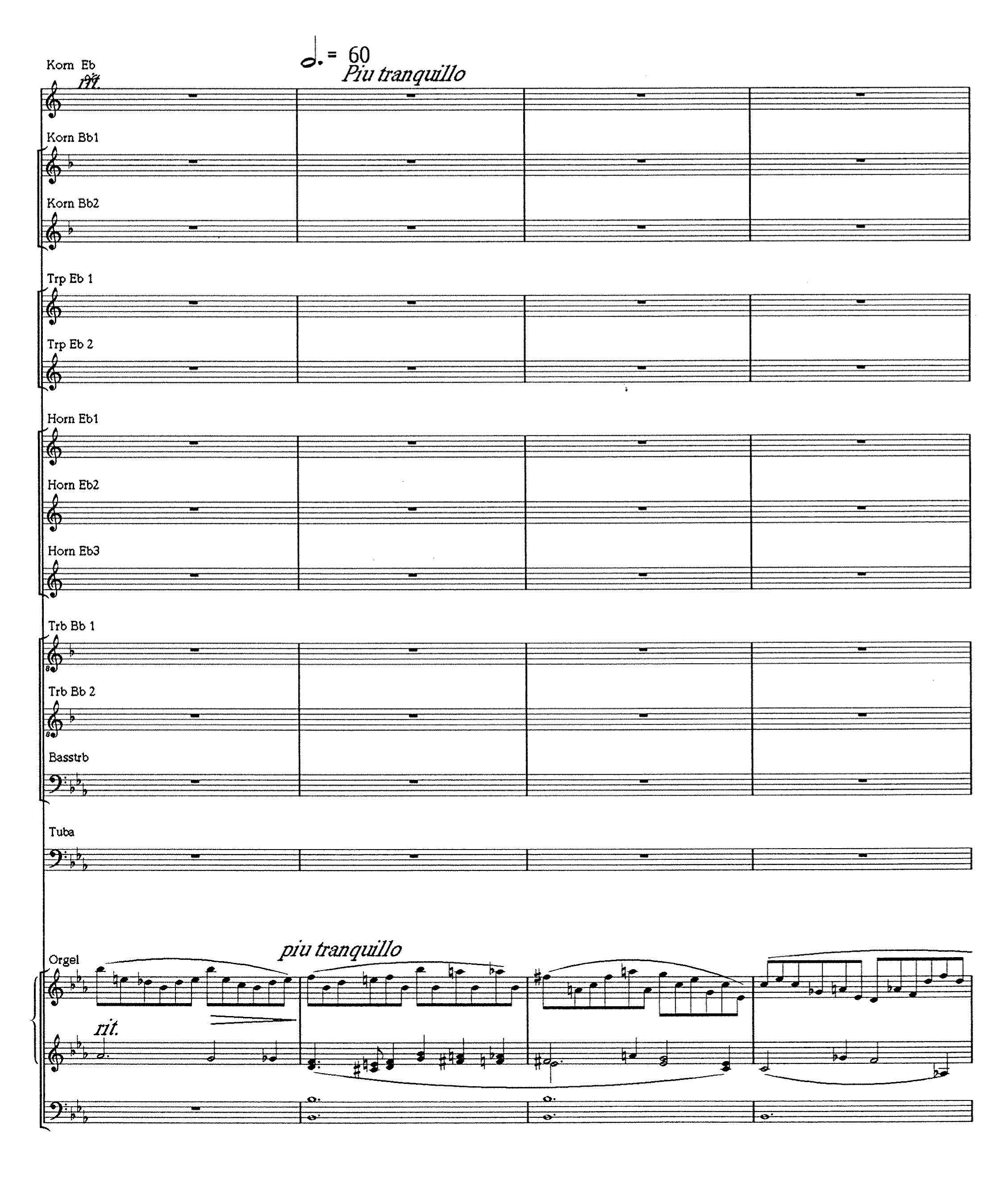 Verket er fra Elfrida Andrées hånd en omarbeidelse av sonate nr. 2 for fiolin og klaver, og ble premiert ved en internasjonal komposisjonskonkurranse i Bruxelles i 1894. I denne utgaven er Elfrida Andrées notasjon fulgt nesten helt ut, bare tydelige utslag av arbeidstempoet er rettet opp, som i Finalen: Andantino i blåserne og Andante i orgelet er utjevnet til Andante. Blåsestemmene er tilpasset dagens messingensembler.
