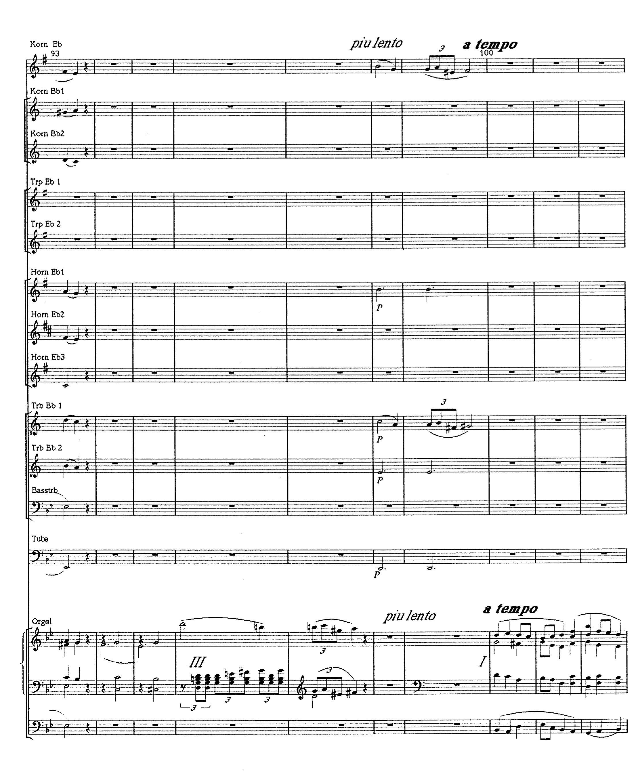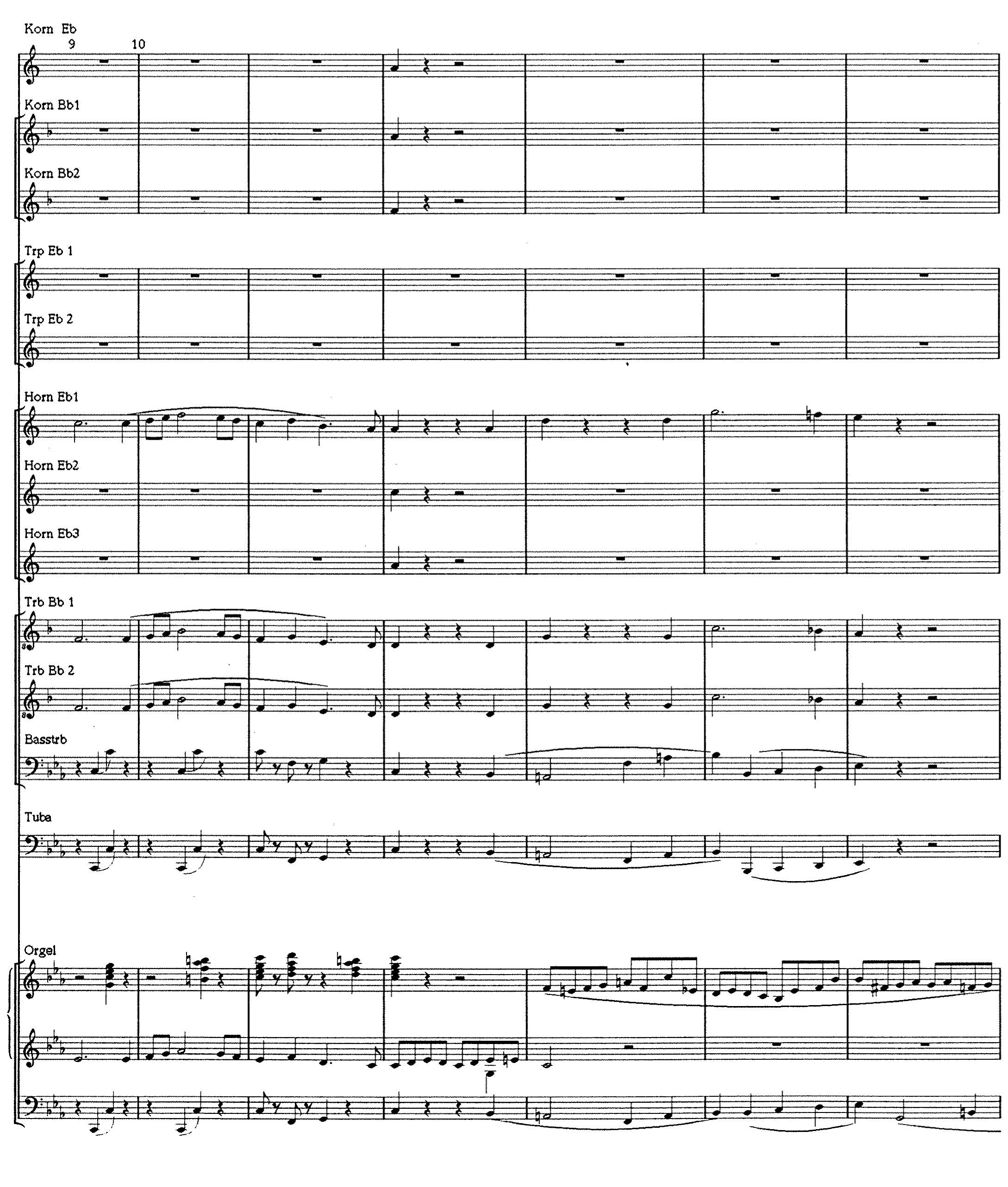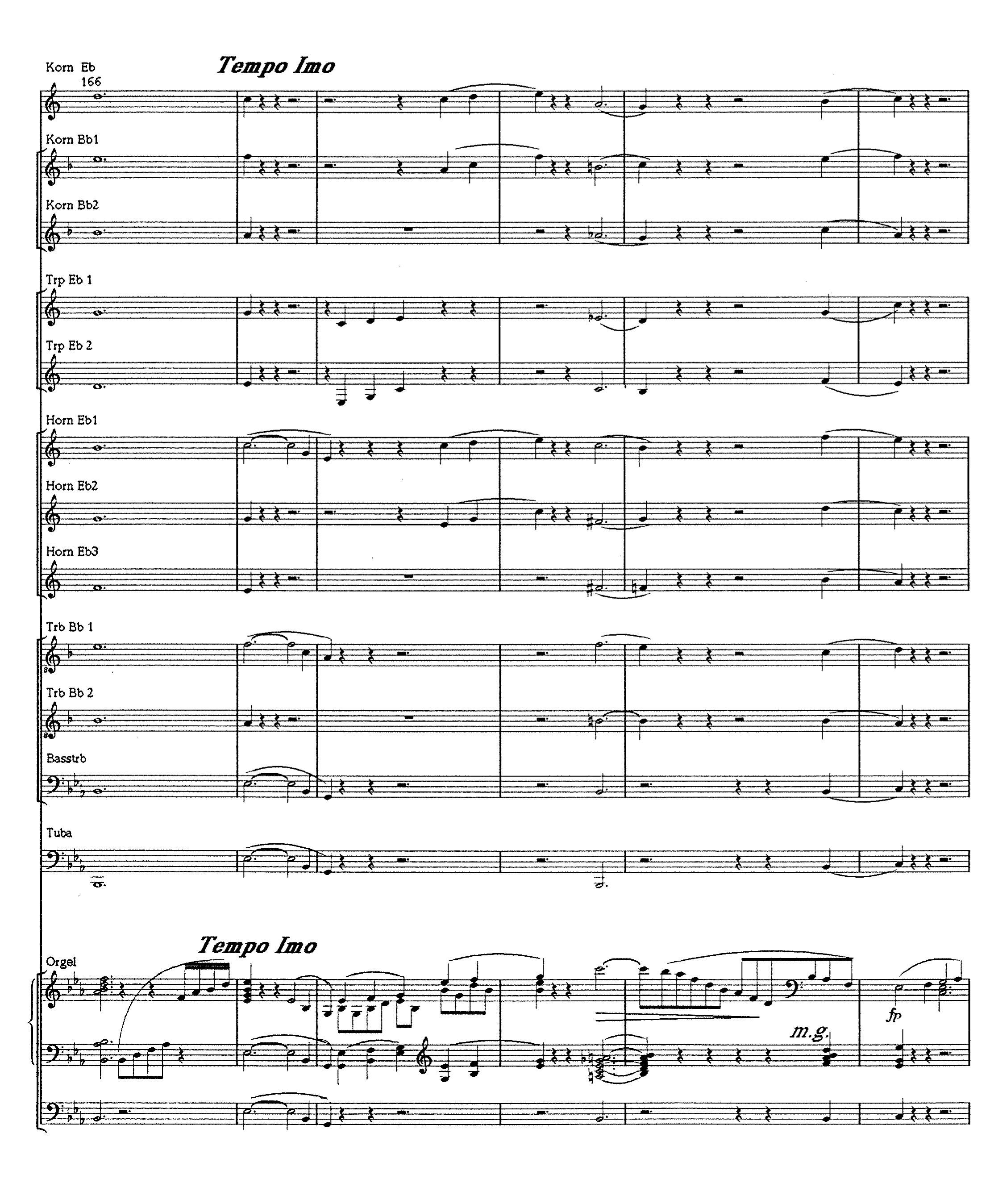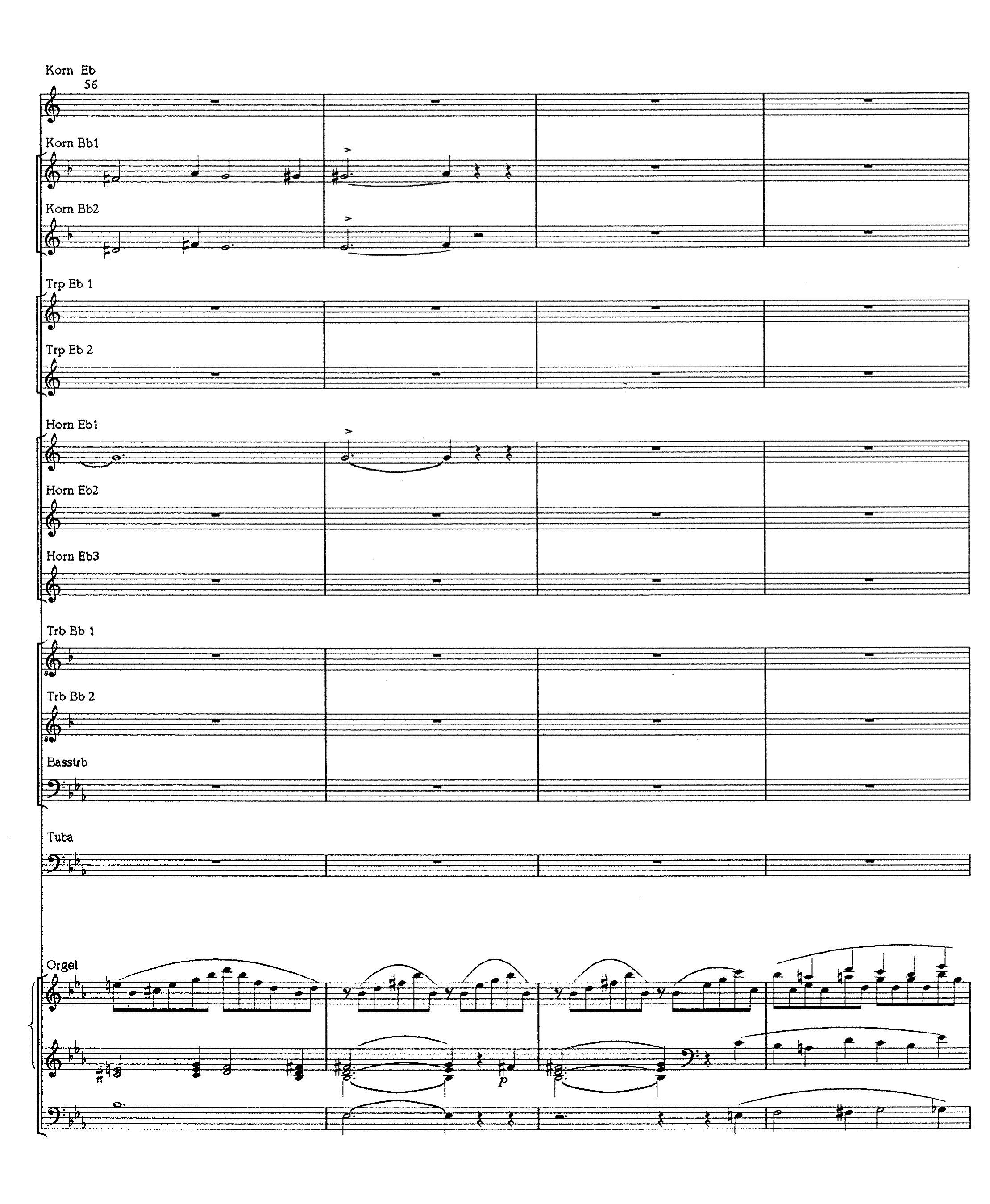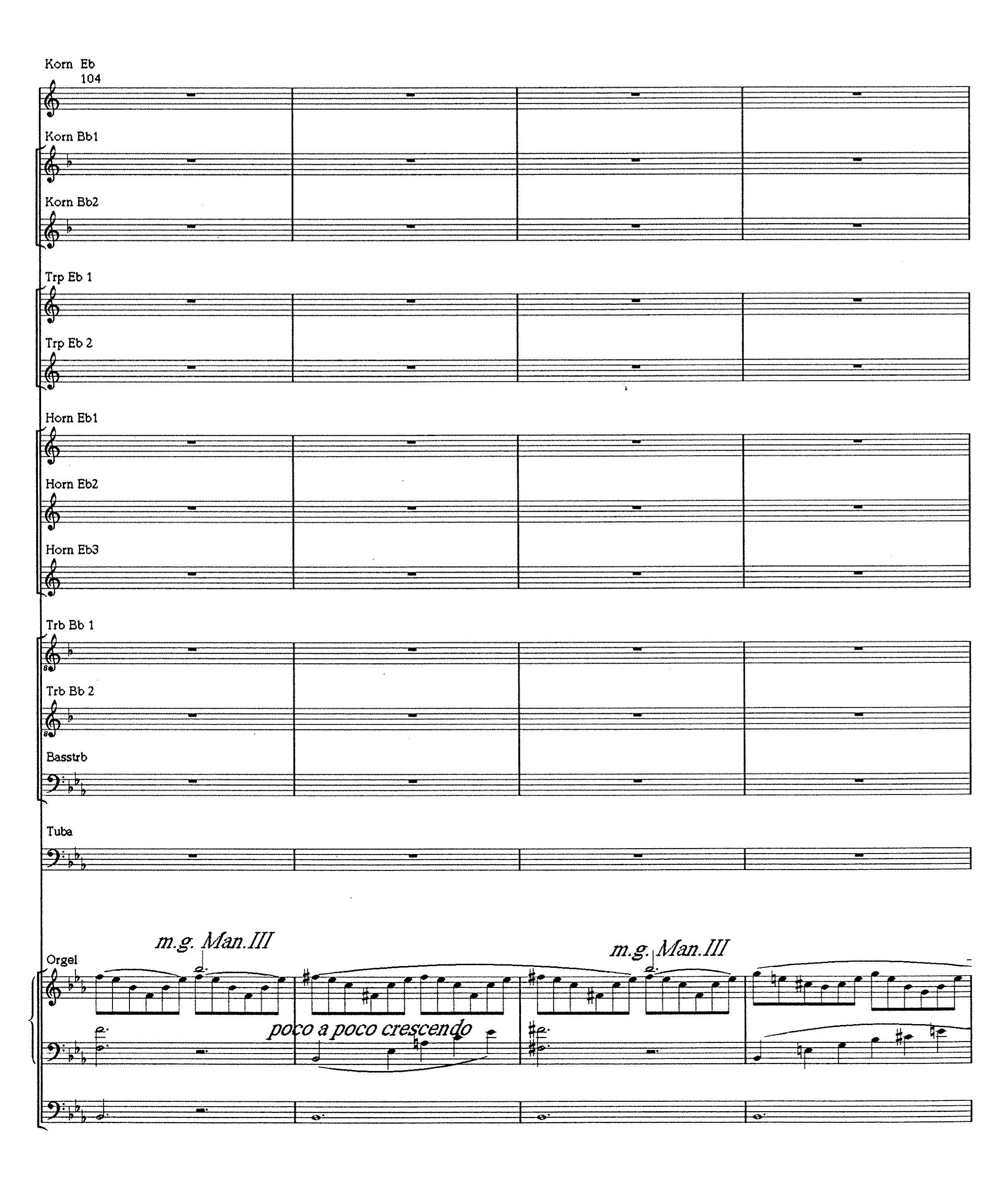 Verket er fra Elfrida Andrées hånd en omarbeidelse av sonate nr. 2 for fiolin og klaver, og ble premiert ved en internasjonal komposisjonskonkurranse i Bruxelles i 1894. I denne utgaven er Elfrida Andrées notasjon fulgt nesten helt ut, bare tydelige utslag av arbeidstempoet er rettet opp, som i Finalen: Andantino i blåserne og Andante i orgelet er utjevnet til Andante. Blåsestemmene er tilpasset dagens messingensembler.