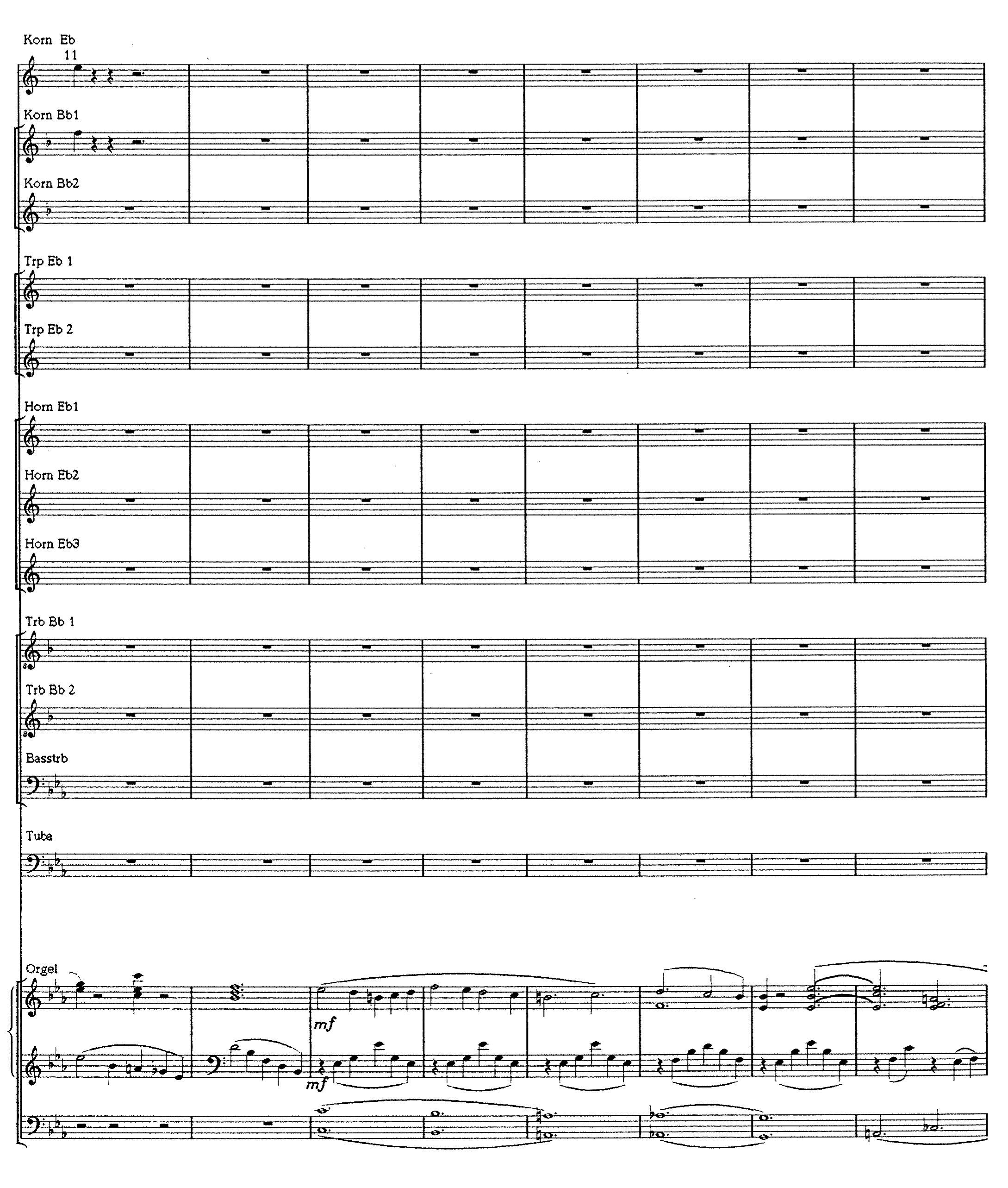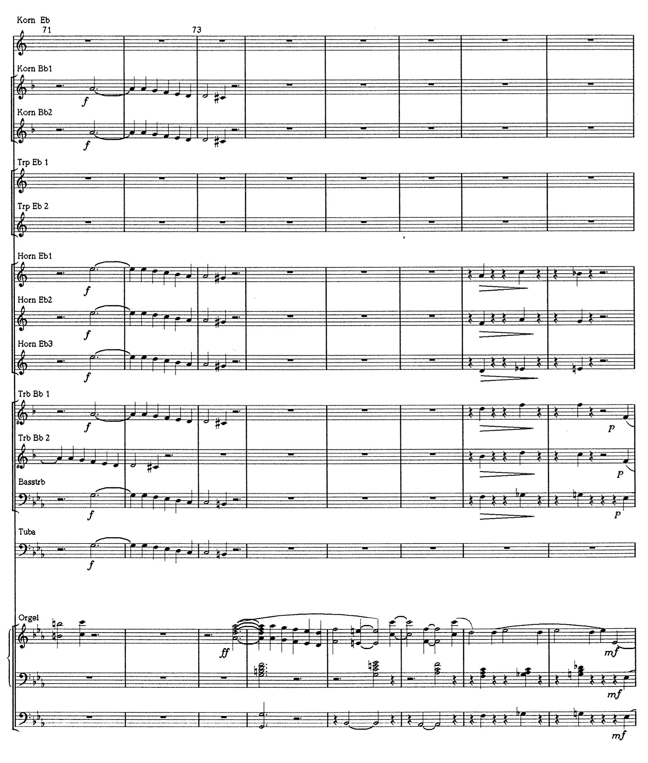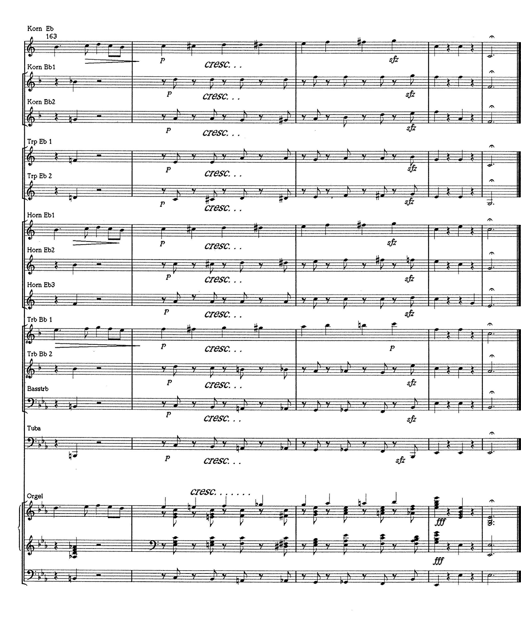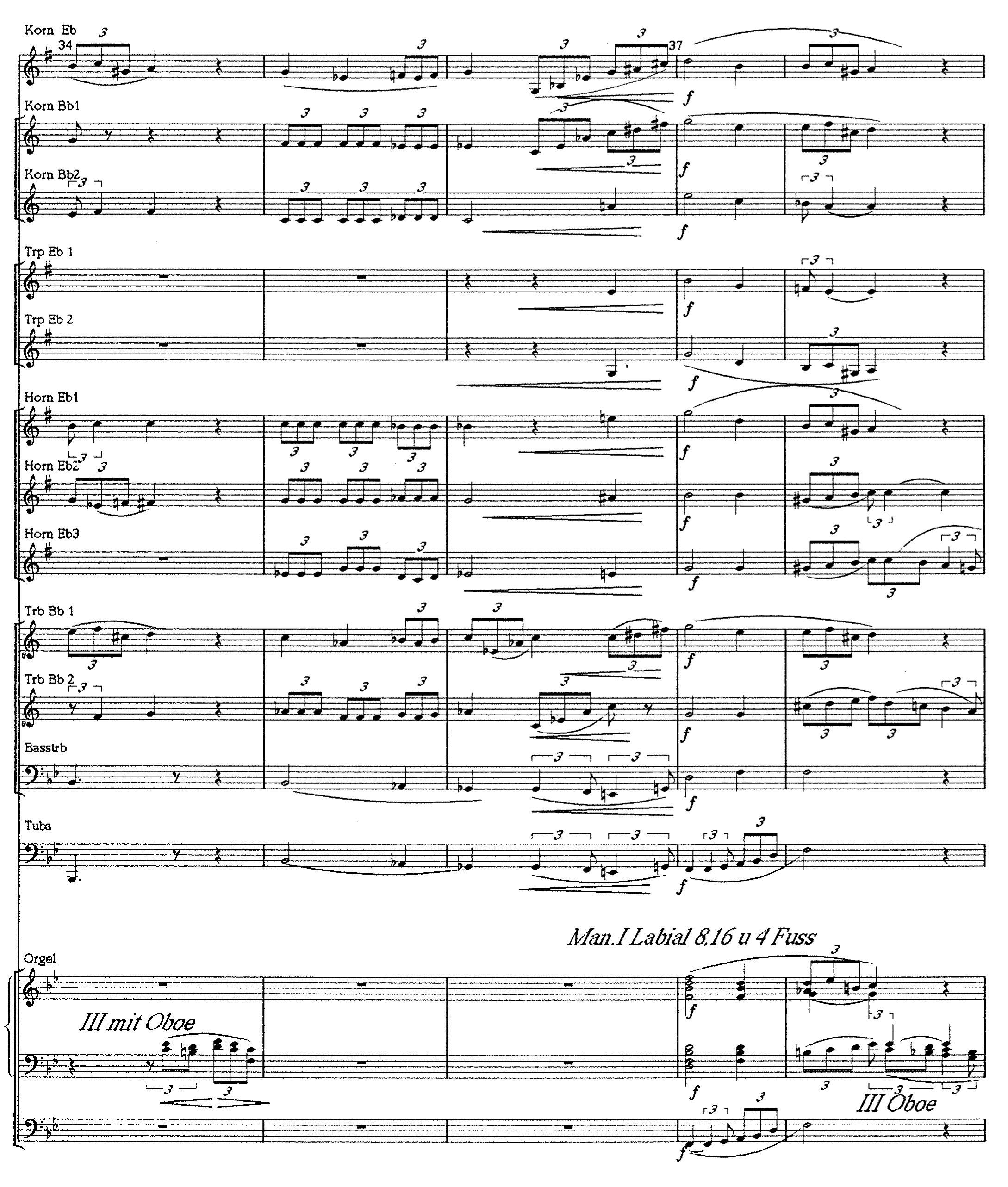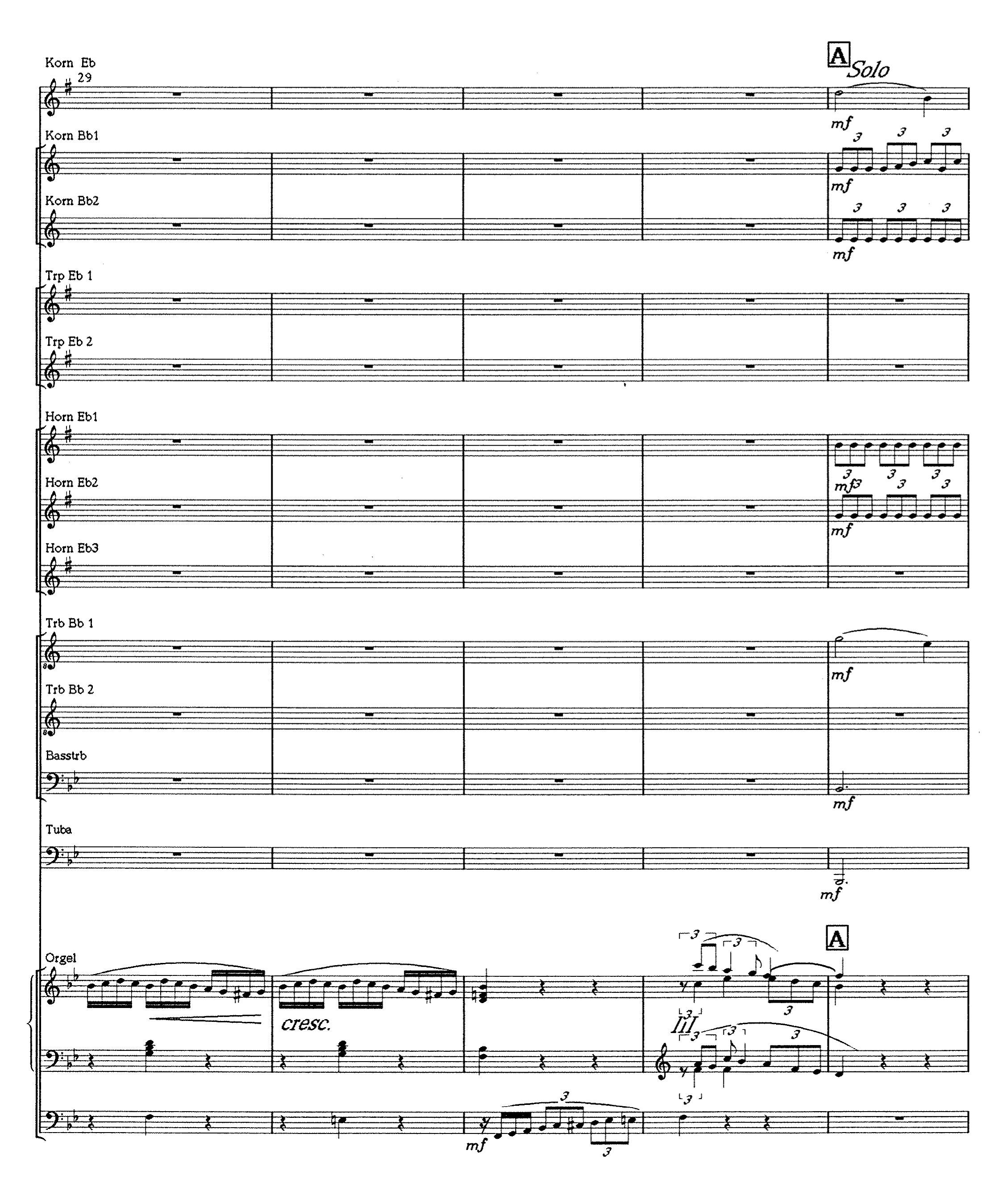 Verket er fra Elfrida Andrées hånd en omarbeidelse av sonate nr. 2 for fiolin og klaver, og ble premiert ved en internasjonal komposisjonskonkurranse i Bruxelles i 1894. I denne utgaven er Elfrida Andrées notasjon fulgt nesten helt ut, bare tydelige utslag av arbeidstempoet er rettet opp, som i Finalen: Andantino i blåserne og Andante i orgelet er utjevnet til Andante. Blåsestemmene er tilpasset dagens messingensembler.