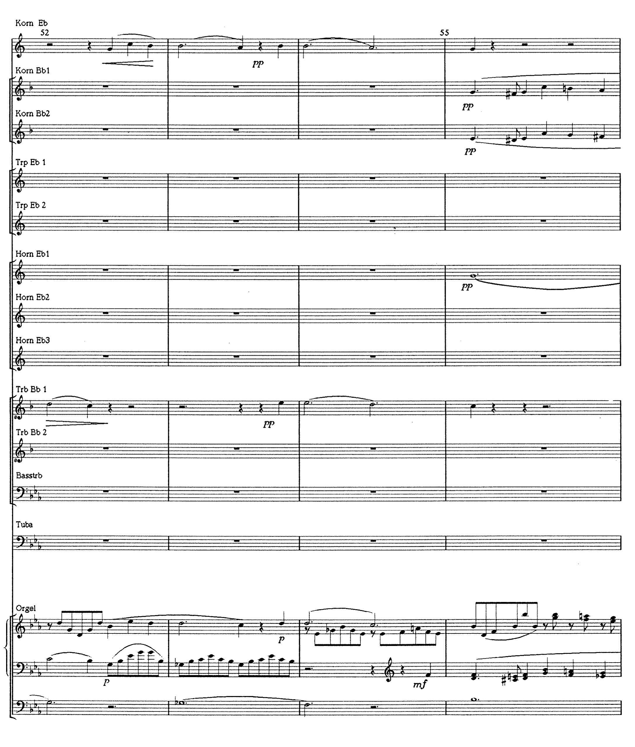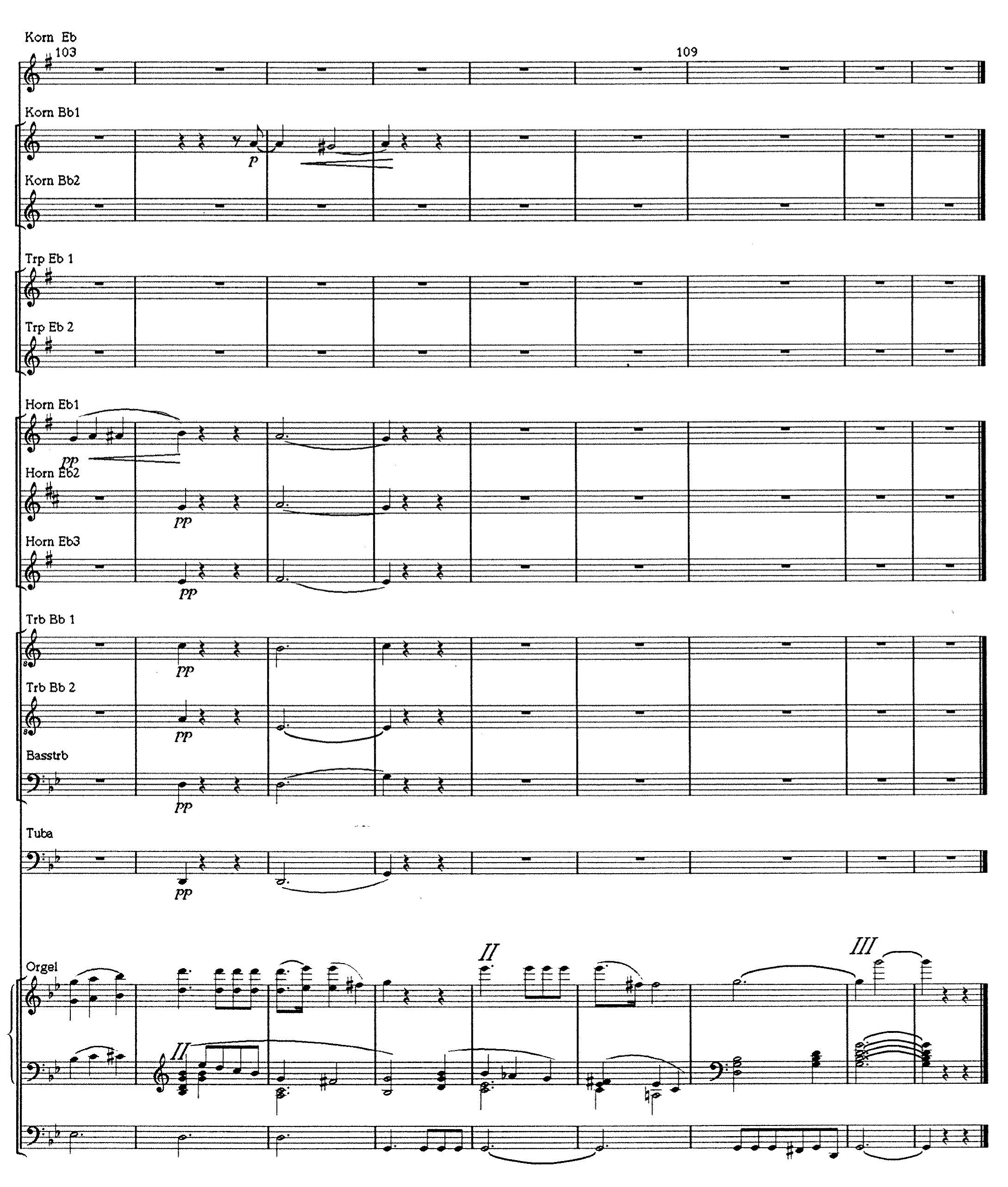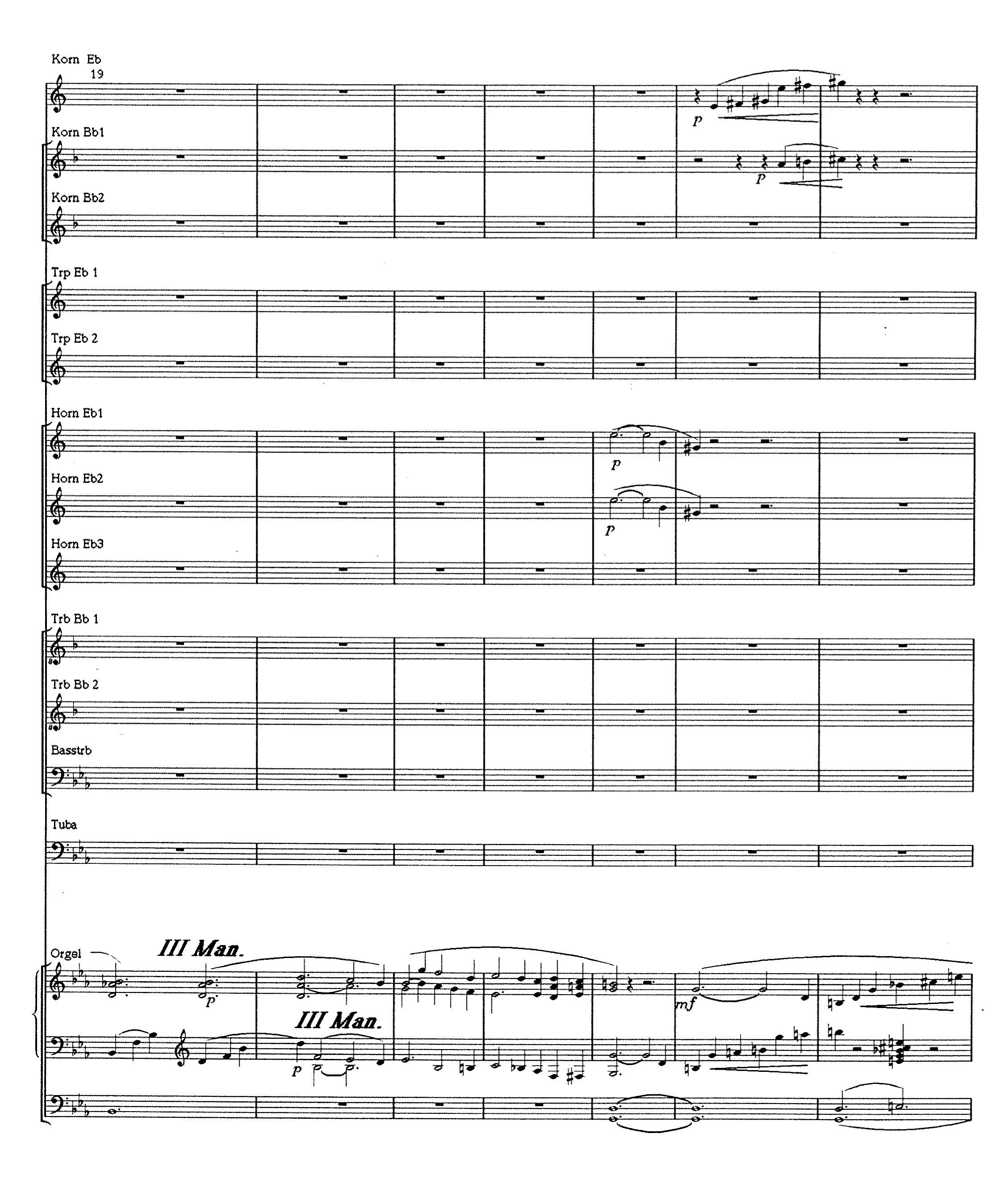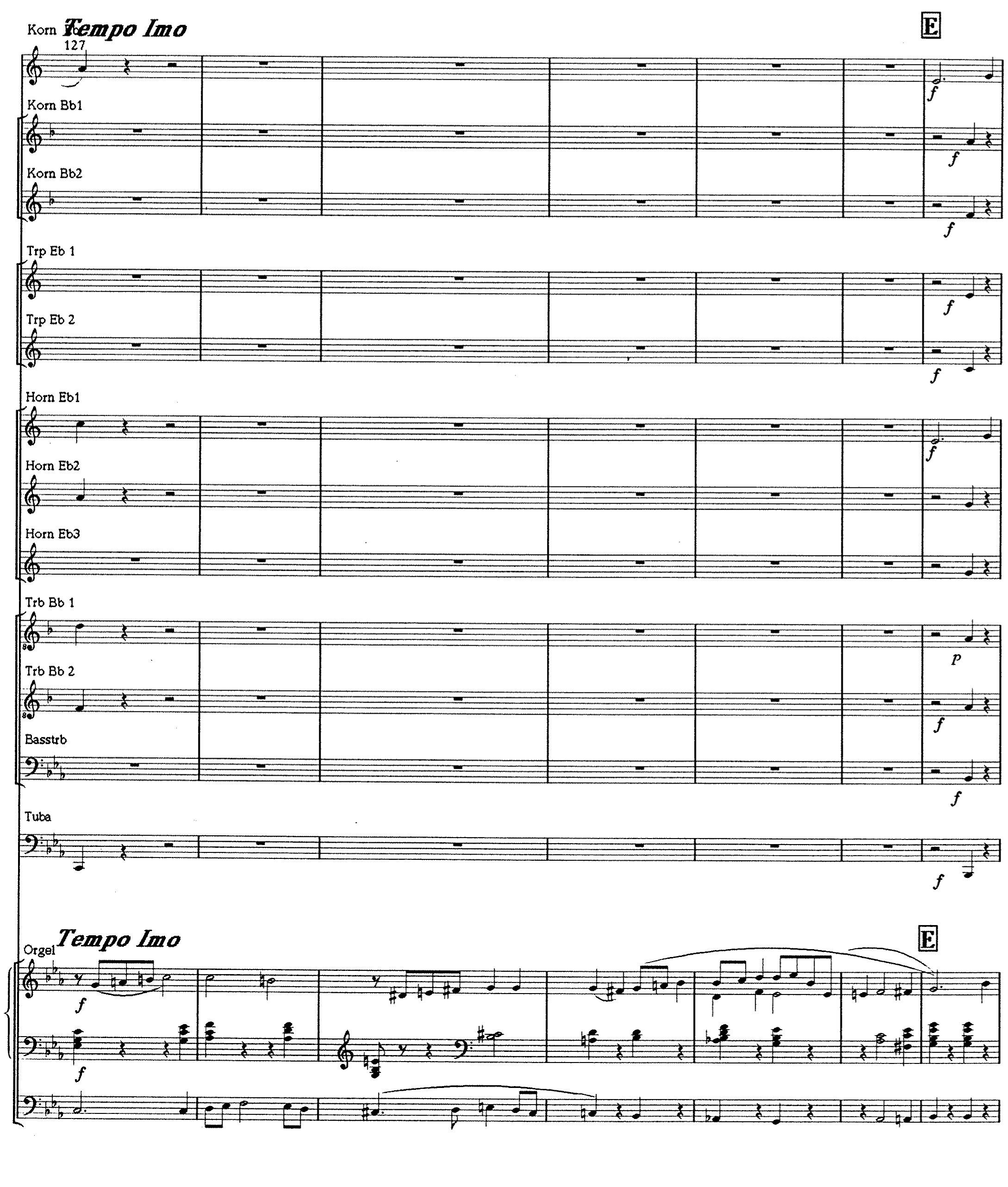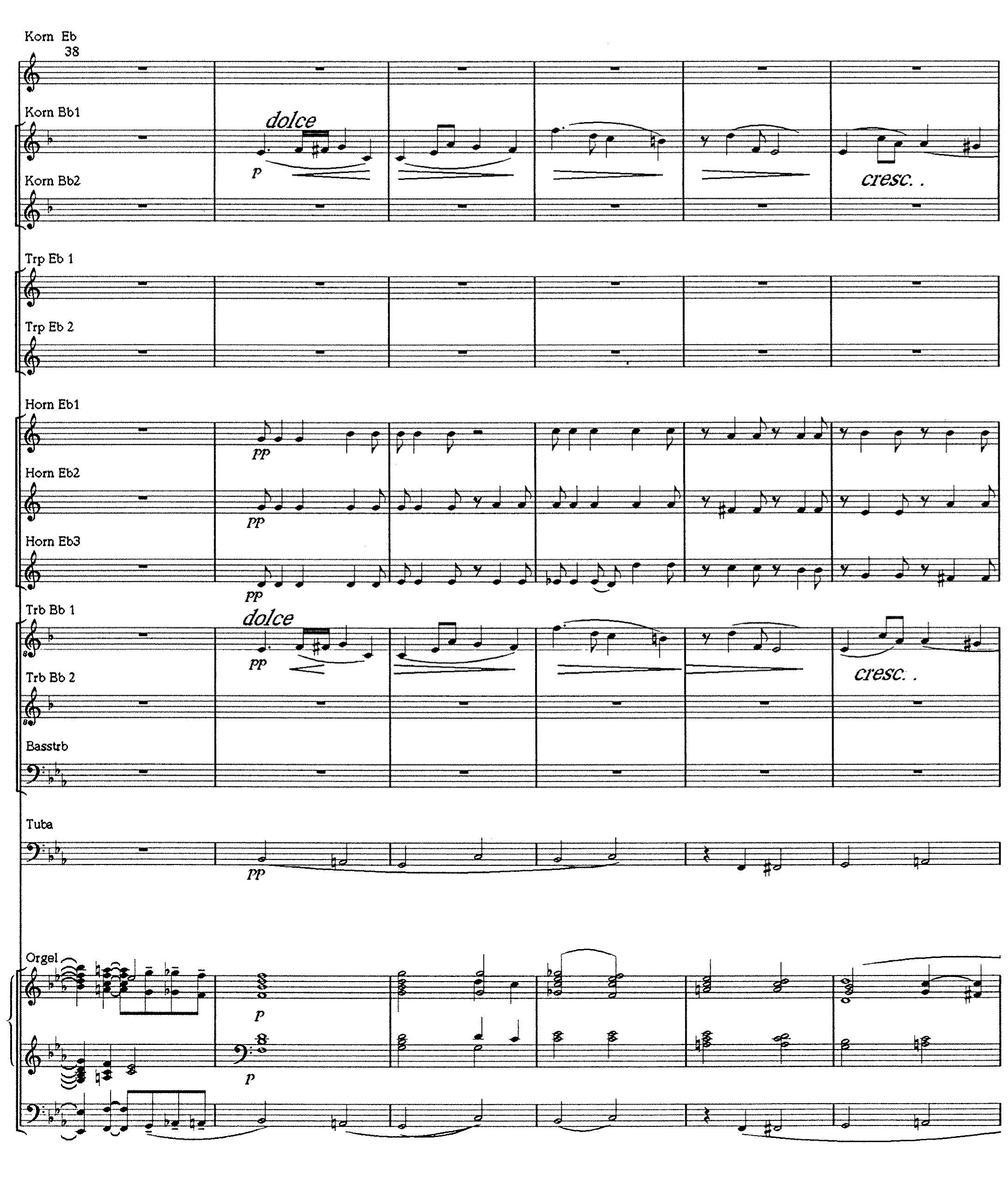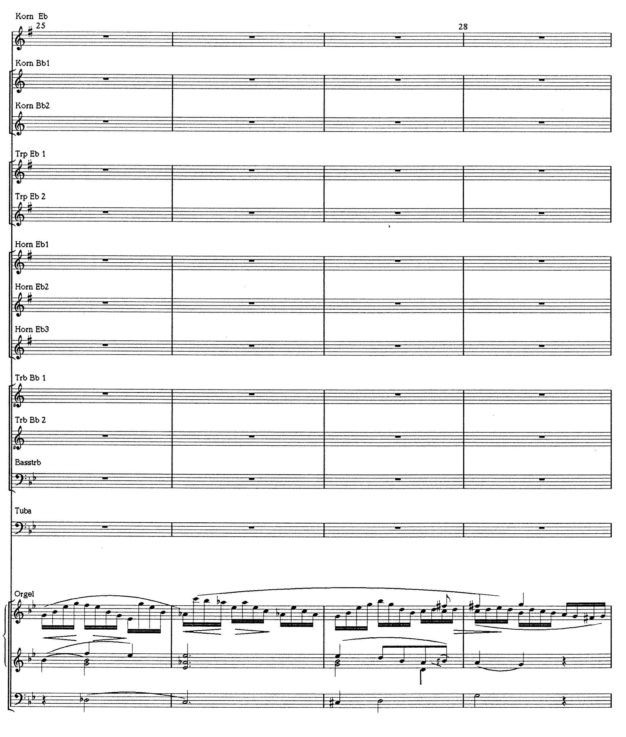 Verket er fra Elfrida Andrées hånd en omarbeidelse av sonate nr. 2 for fiolin og klaver, og ble premiert ved en internasjonal komposisjonskonkurranse i Bruxelles i 1894. I denne utgaven er Elfrida Andrées notasjon fulgt nesten helt ut, bare tydelige utslag av arbeidstempoet er rettet opp, som i Finalen: Andantino i blåserne og Andante i orgelet er utjevnet til Andante. Blåsestemmene er tilpasset dagens messingensembler.