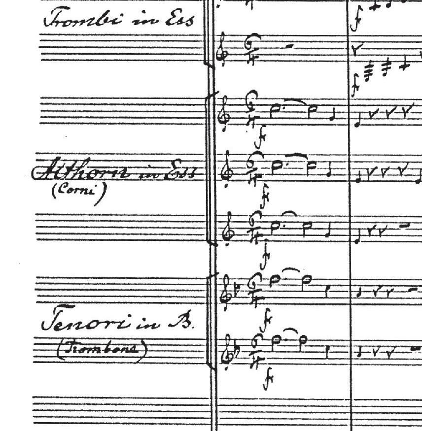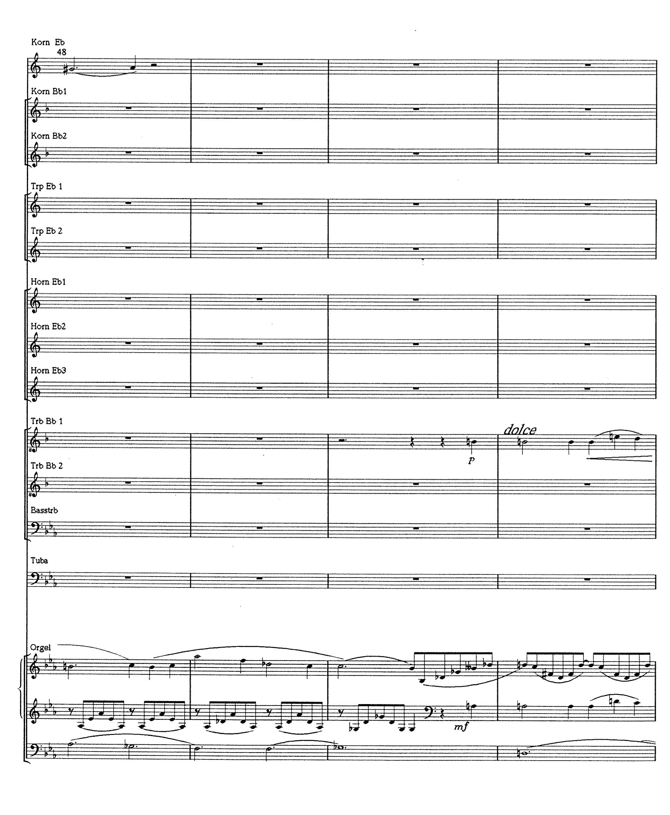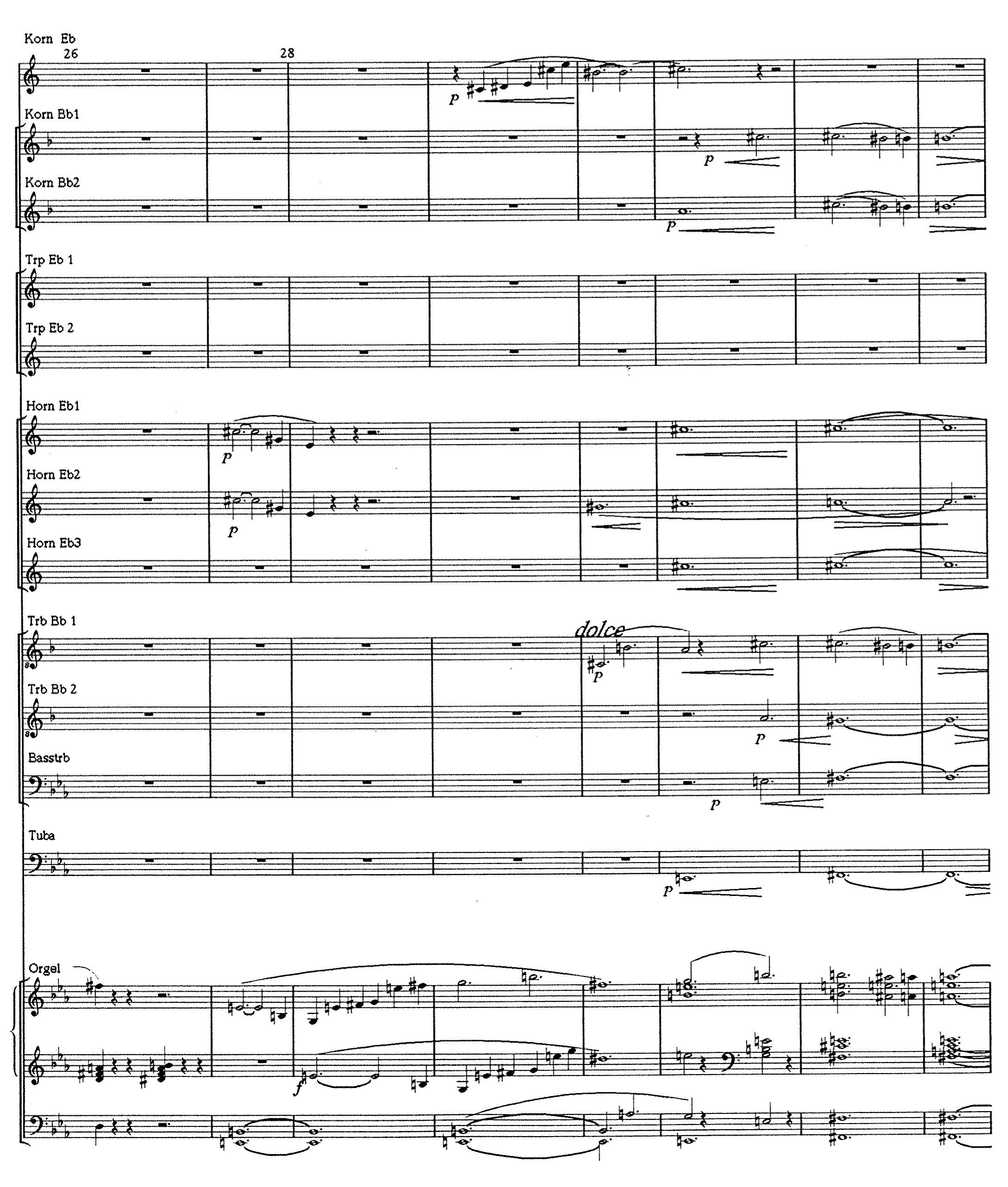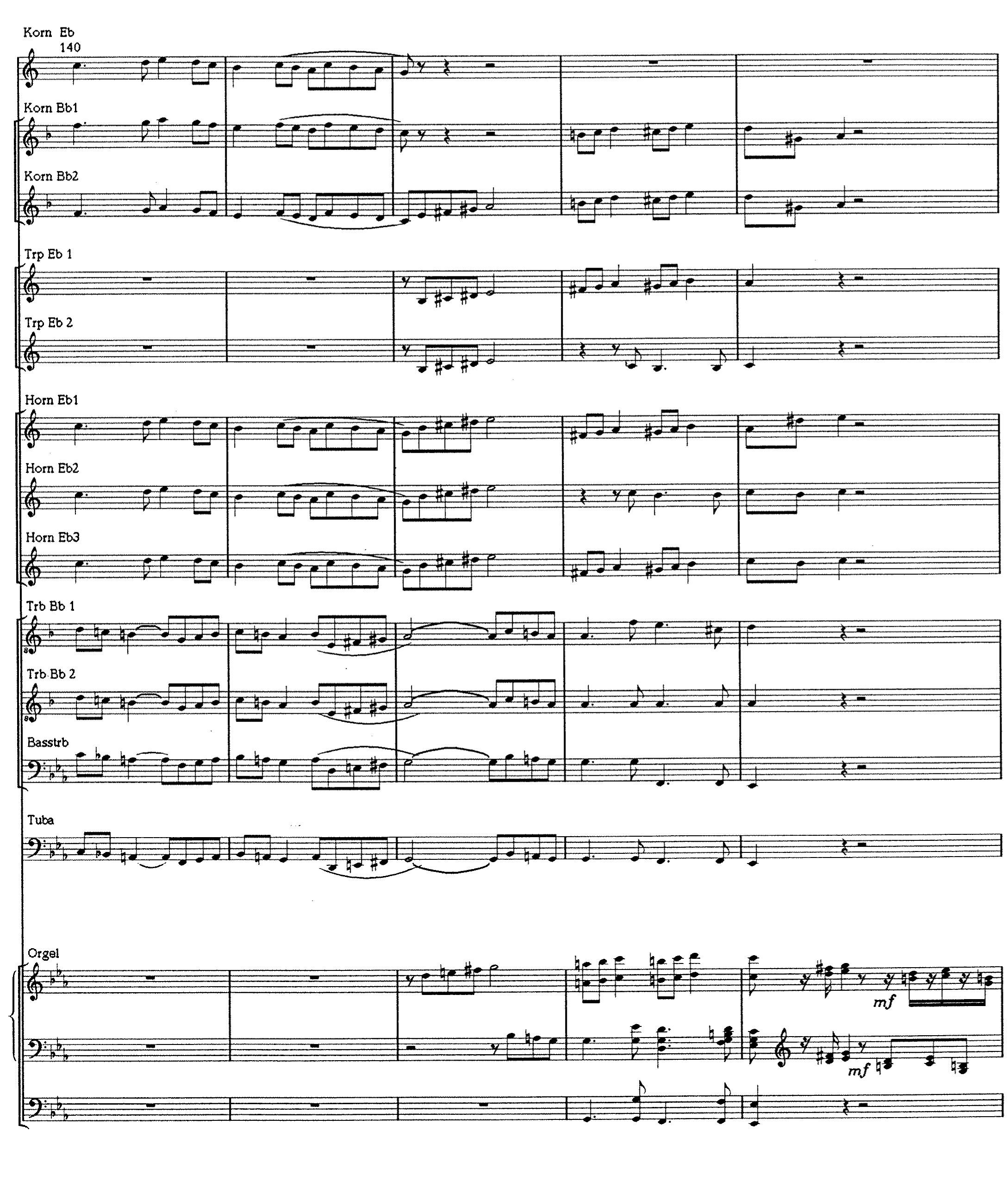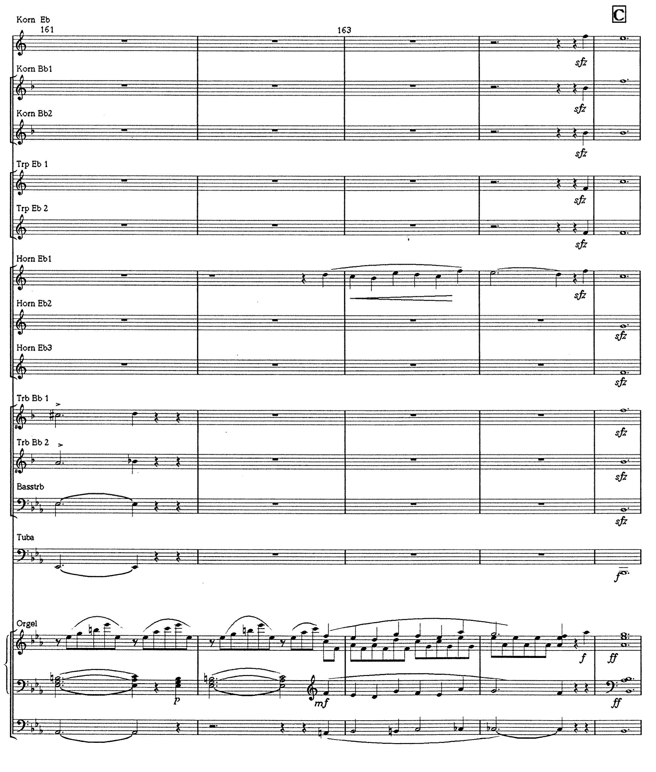 Verket er fra Elfrida Andrées hånd en omarbeidelse av sonate nr. 2 for fiolin og klaver, og ble premiert ved en internasjonal komposisjonskonkurranse i Bruxelles i 1894. I denne utgaven er Elfrida Andrées notasjon fulgt nesten helt ut, bare tydelige utslag av arbeidstempoet er rettet opp, som i Finalen: Andantino i blåserne og Andante i orgelet er utjevnet til Andante. Blåsestemmene er tilpasset dagens messingensembler.