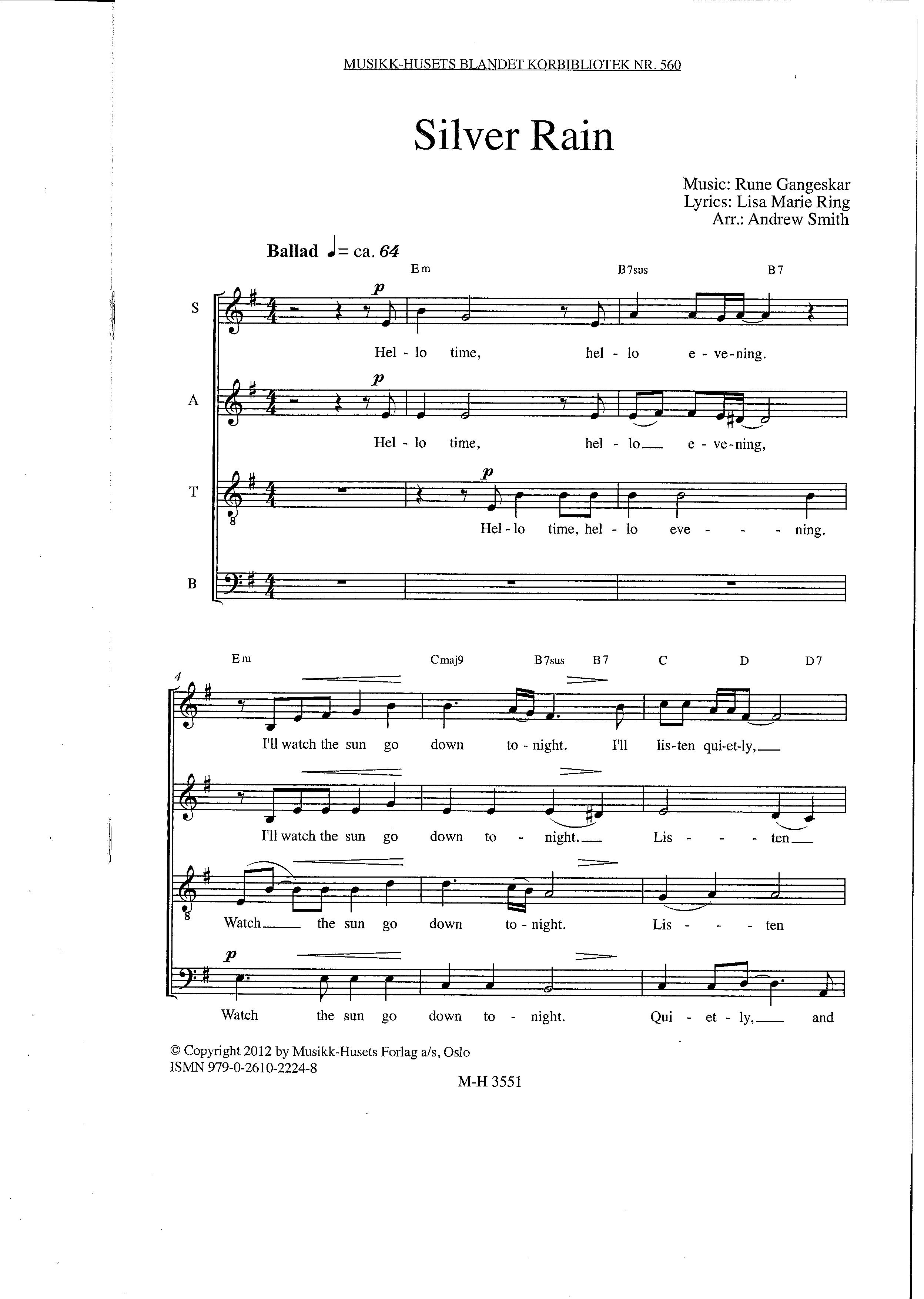 9790261022248 Silver rain SATB by Musikkforlagene - Issuu