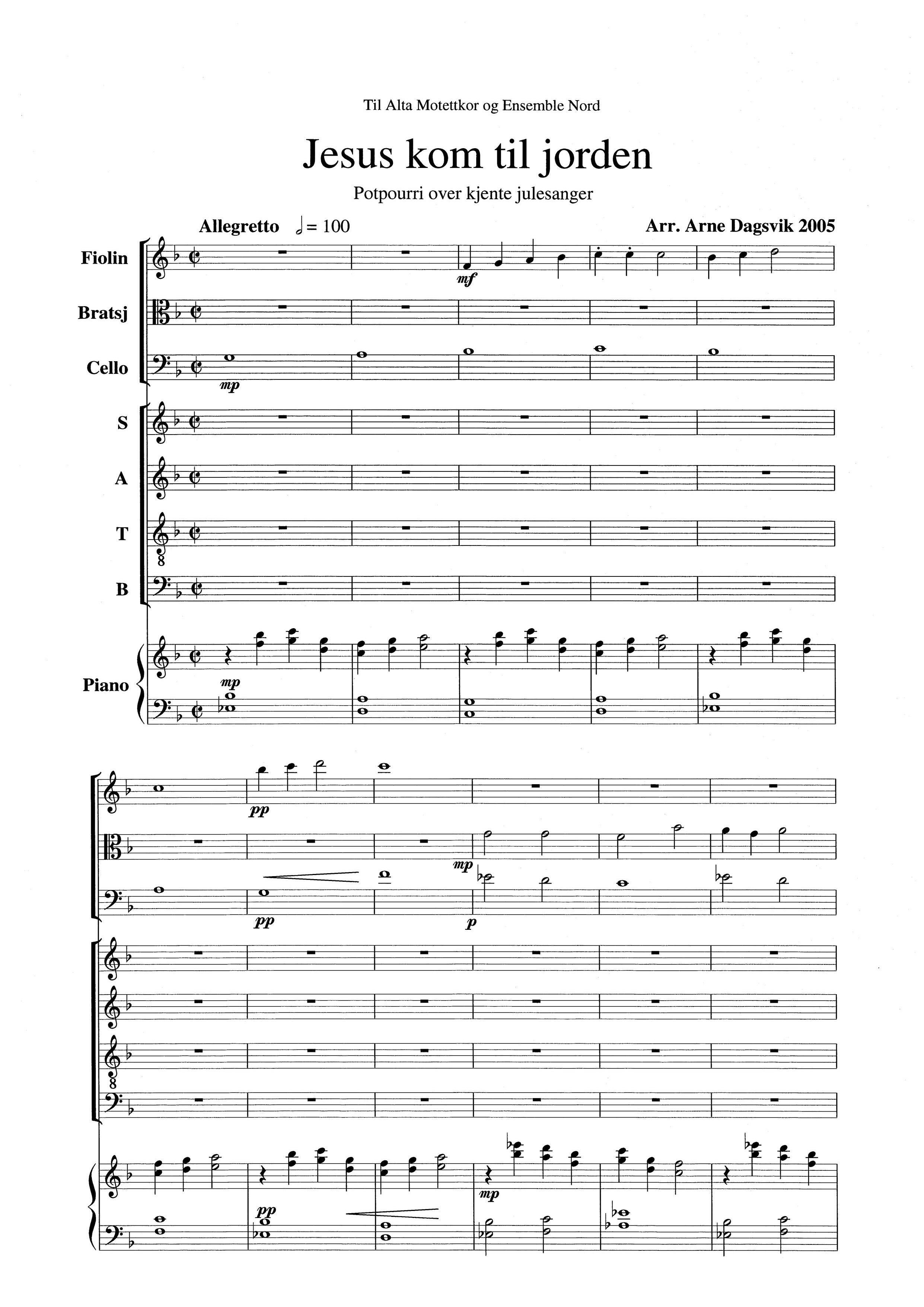 Potpourri over kjente julesanger for blandet kor og klaverkvartett