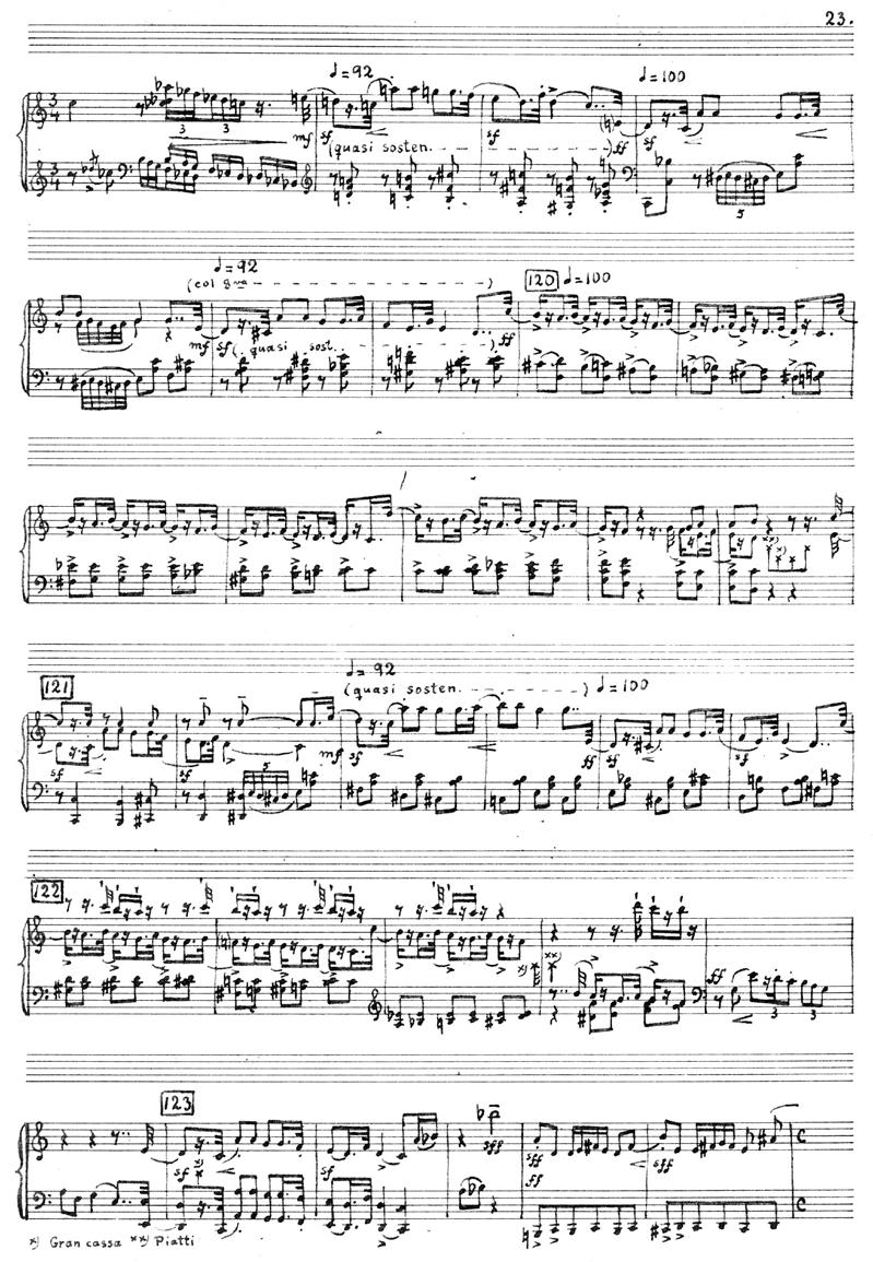 I andre deler spiller han på hvilke konnotasjoner vi har til ulike instrumenter og lydbilder. Den forfengelige Vanitasia kveles av sitt eget hår og kastes gjennom et speil. Scenen illustreres først ved arpeggio-akkorder i harpen, før en fløyte presenterer en lys melodi – et idyllisk og «feminint» lydbilde. Til slutt høres et kraftig slag med cymbalene; det er speilet som knuses.