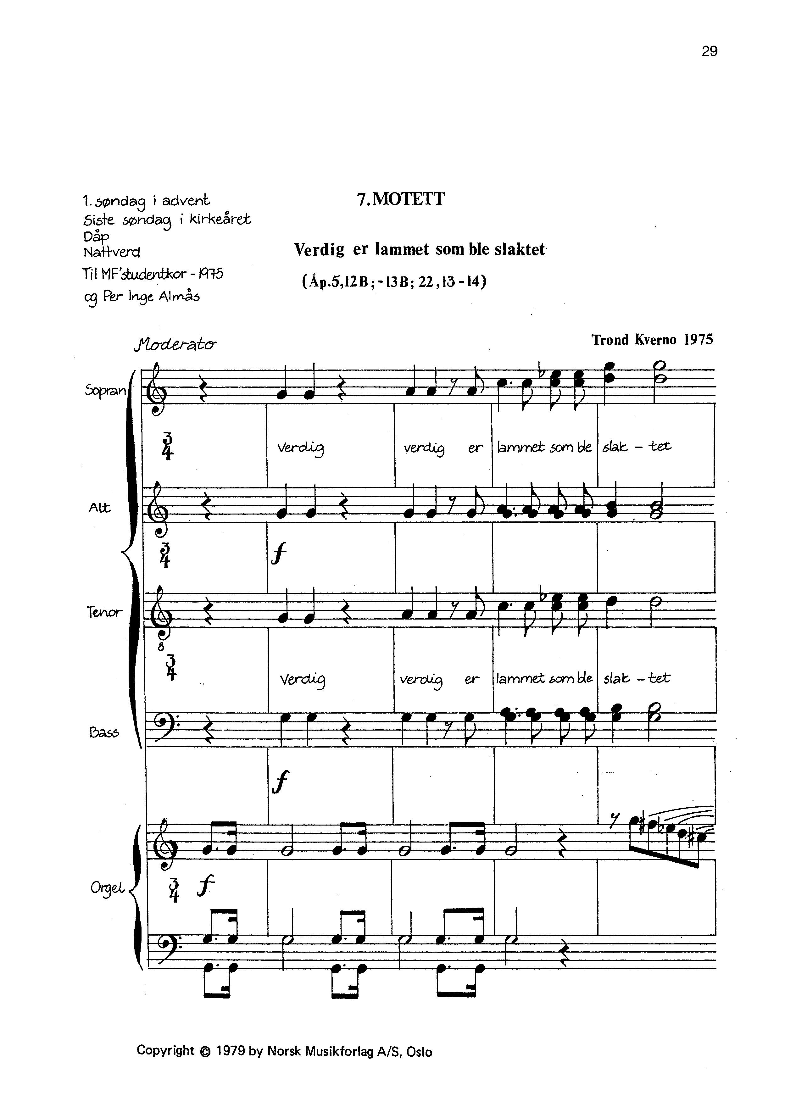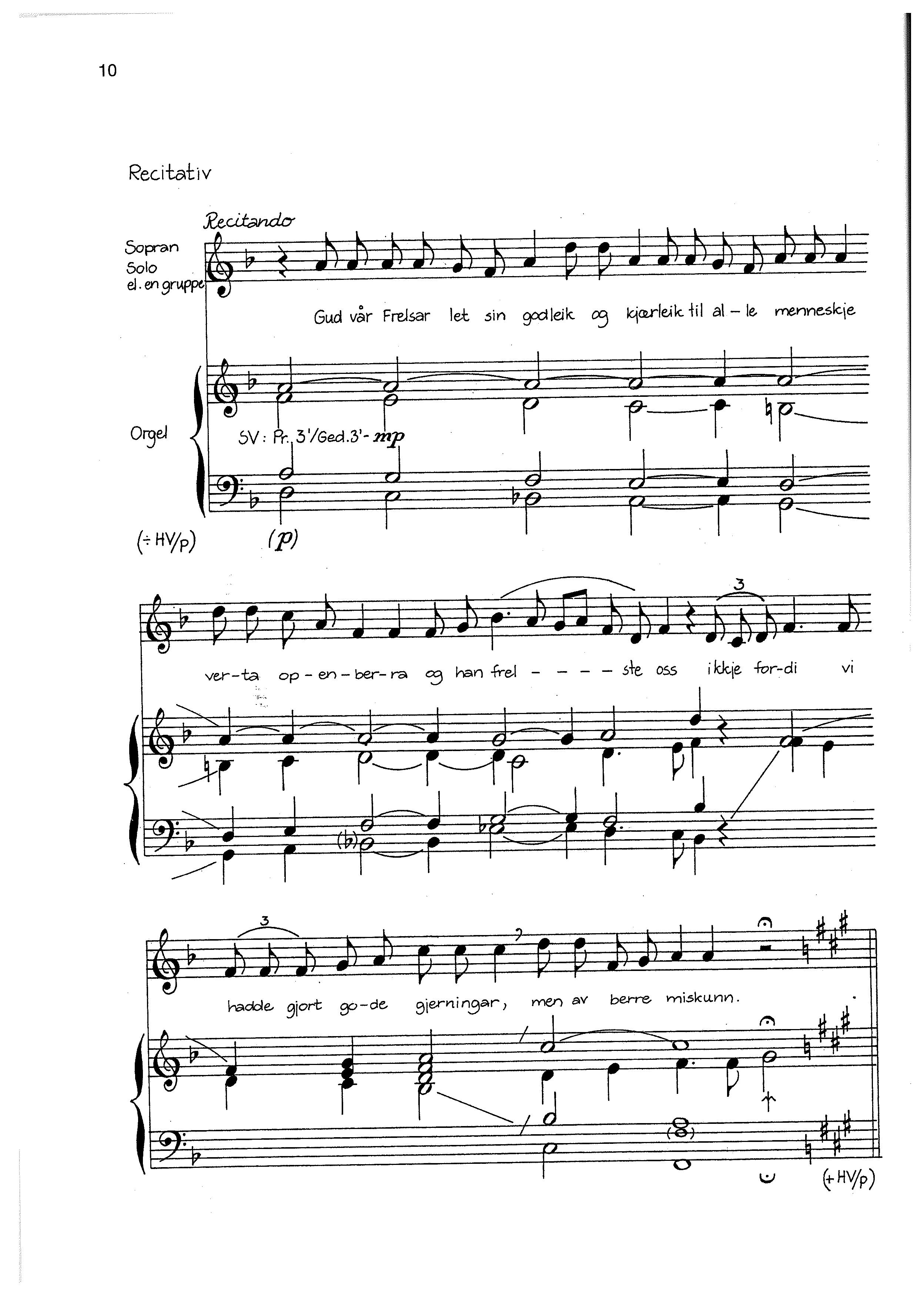 De fleste av disse satsene er blitt til i konkrete situasjoner. Nr. 2, 3 og 7 er blitt til på turnéer med MF’s studentkor, og uroppfrt på disse. Nr.4 er skre vet til Fagerborg kirkes gjenåpning høsten 1974, nr. 6 til et TV-presentasjons program av Det Nye Testamentet i den nye nynorskoversettelsen, nr. 8 til høy messe i Nidarosdomen ved Musica Sacras sommerkurs 1975. Nr. i og 9 er hentet fra St.Hansvigilien “Rydd vei for Herren”, skrevet til Rikskirkesang fest for barn i Molde 1975, men instrumentariet er redusert til et minimum, og korenes antall fra tre til ett.