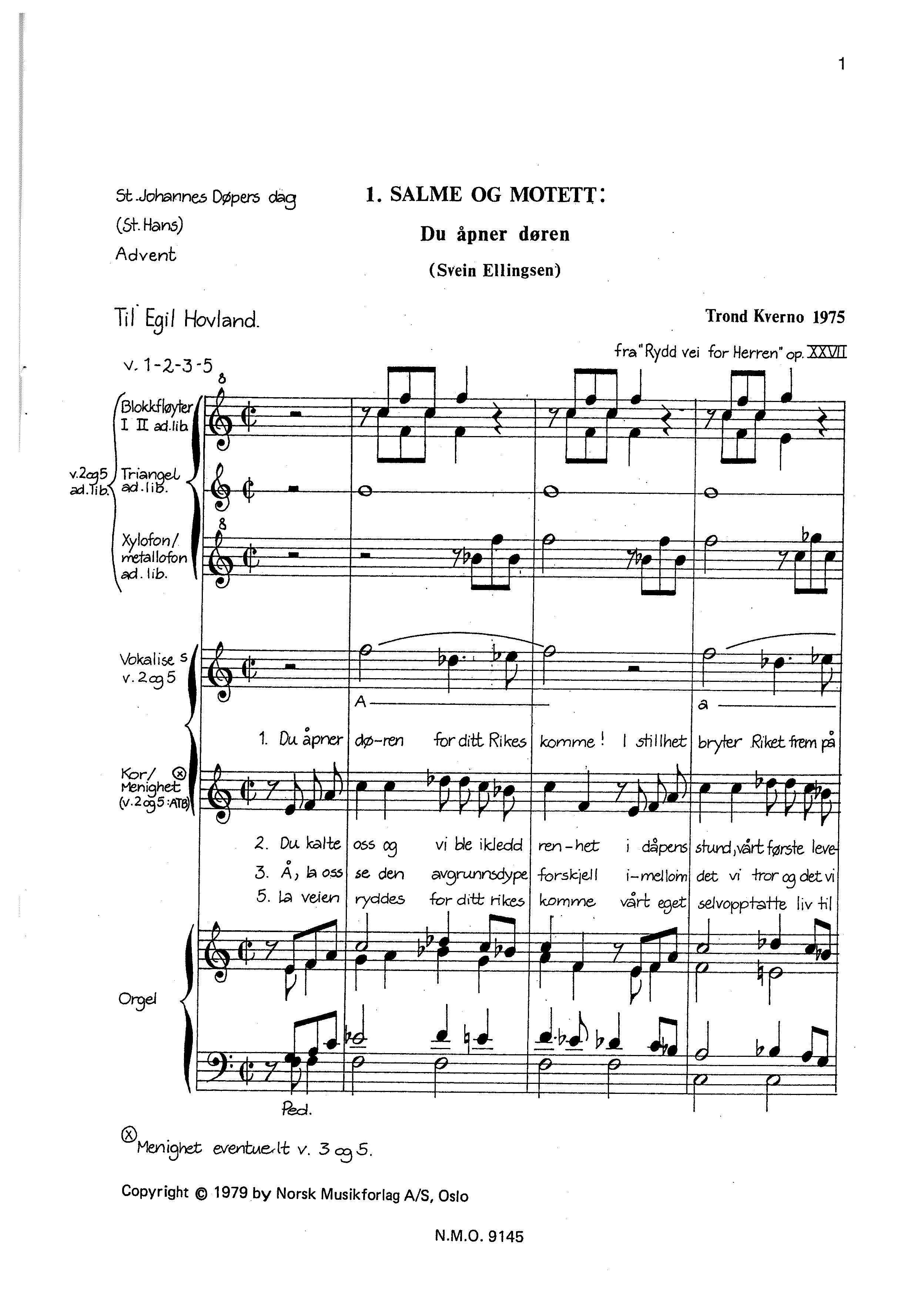 Blandet kor (blokkfløyter, stavspill, rytmeinstrumenter ad lib.) og orgeL