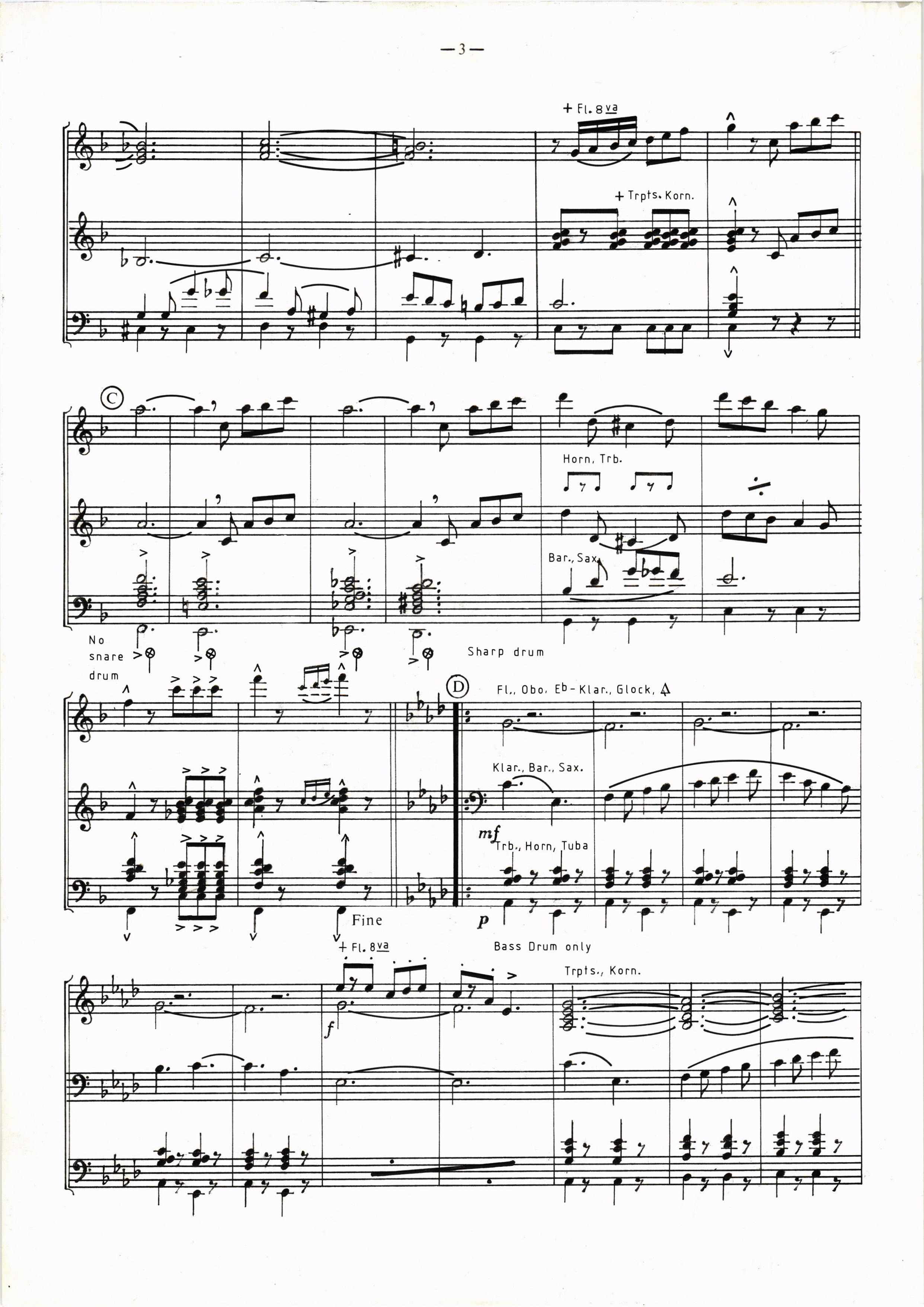 tt.8 va { Trpis.11e1n.drumSharp@ Ft,, obo, Eb- Ktar'., 6tock, {,Fine +. Fr.9vatrb., Horn, TubaBass Drum onty Ktar., Bar.. Sax.Trpt., Korn.D. S. u. rep. al Fine B'