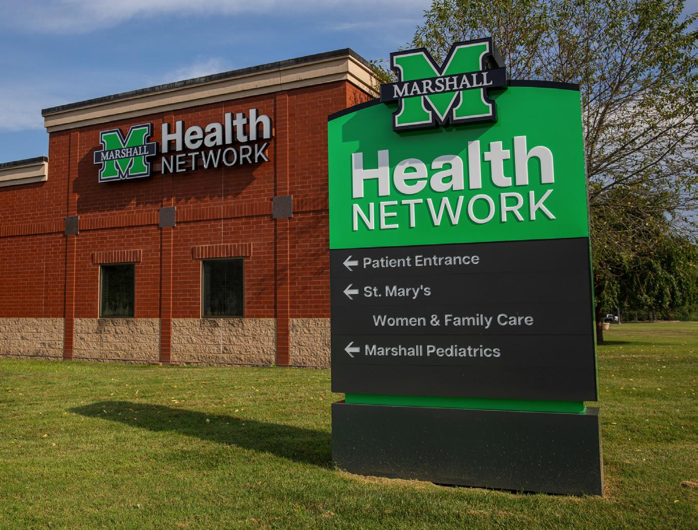 Branded signage is a vital part of Marshall Health Network’s identity, ensuring clear, consistent and professional representation across all campuses and locations. These signs not only serve as wayfinding tools for patients and visitors but also reinforce Marshall Health Network’s presence and commitment to the communities we serve. By maintaining a cohesive look and feel, branded signage strengthens our reputation, builds trust and reflects the high-quality care patients can expect at every location. Additional examples may be found at: brand.marshallhealthnetwork.org.