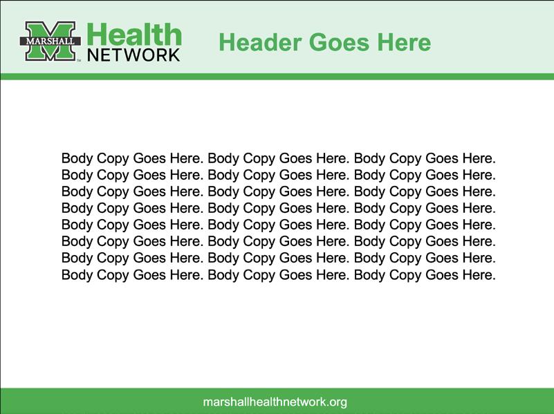 Standardized templates for PowerPoint presentations, research posters, white coats and other materials are available for download at: brand.marshallhealthnetwork.org.