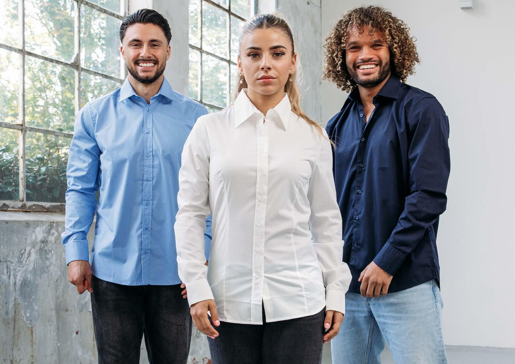 These styles follow your body in a flattering way, without clinging to it. The sleeves and shoulders fit closer to the body. The regular fit is currently the most popular shape.