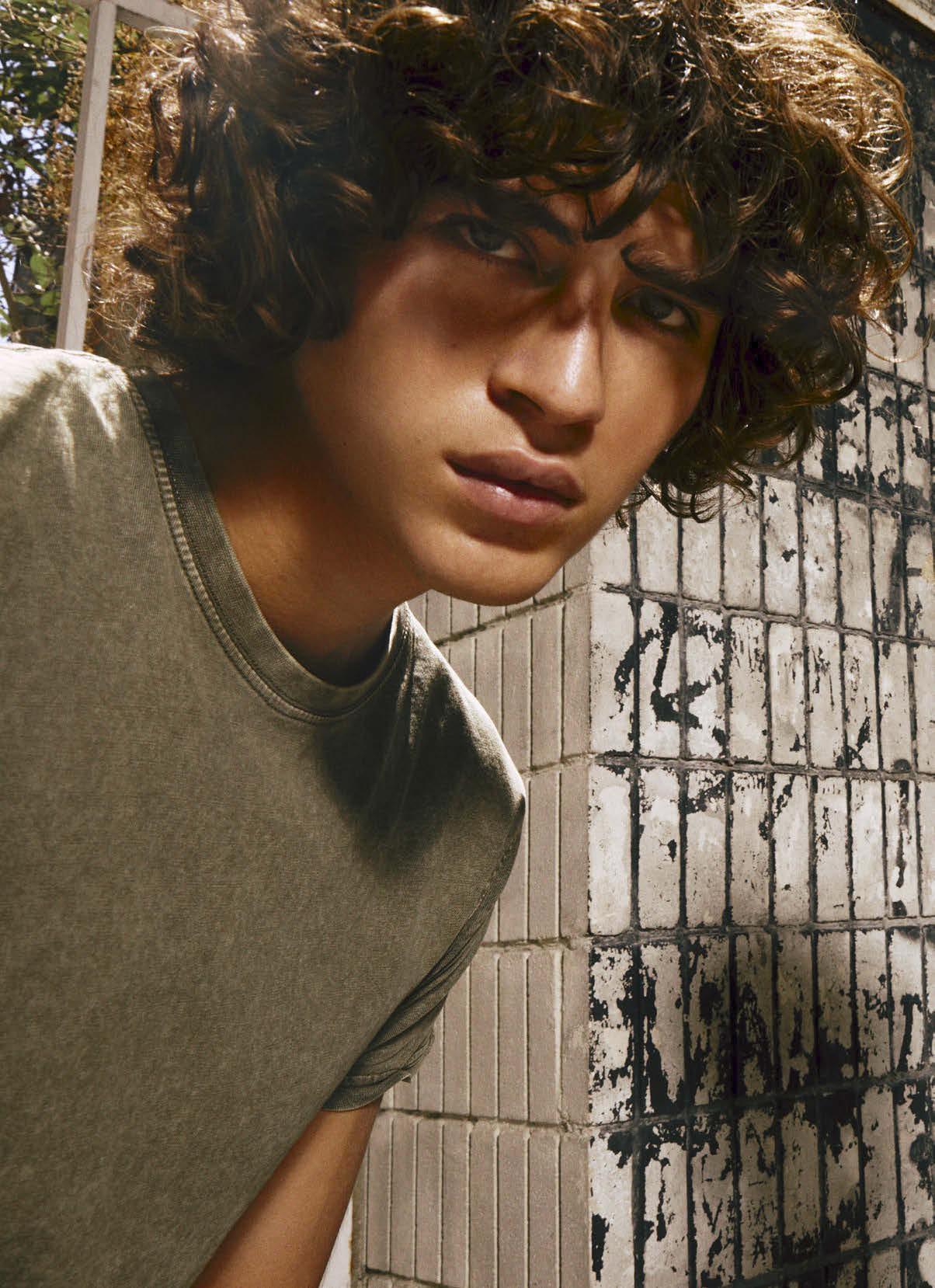 Loose-fitted short-sleeve t-shirt with neckline in the same fabric. Interior covered seams in collar. Reinforced turn-ups on sleeves and side seams.