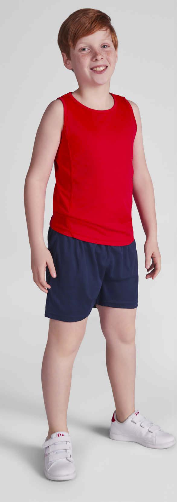 Short-sleeve t-shirt with double layer crew neck in elastane, made in tubular fabric for adults. Side seams in kids sizes. Reinforced covered seams in collar.