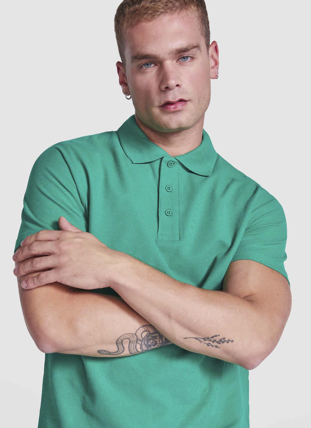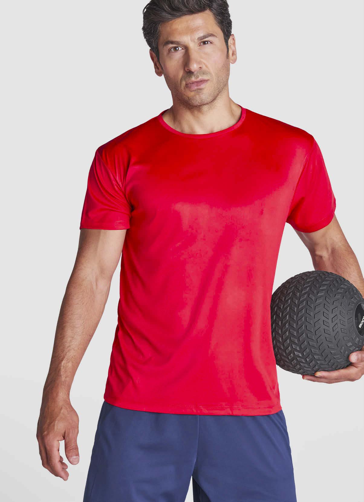 Thick short-sleeve t-shirt for men in cotton. Wide 2x1 ribbed crew neck and sleeve edging. Reinforced covered seams in collar. Side seams. Matching Roly logo on left side hem. Wide seam on hem.