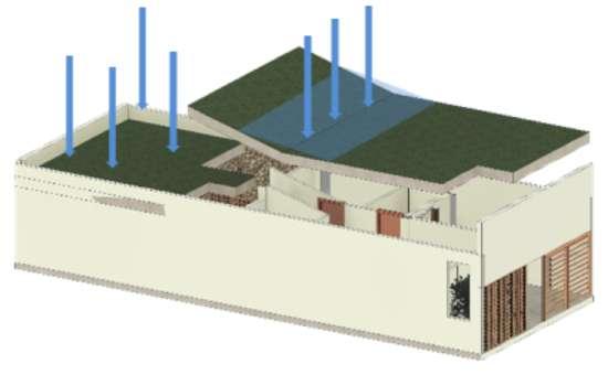 Para garantizar la ventilación cruzada y la cenital transversal, se plantea una cubierta semiplana, con una abertura tipo lucarna Con respecto a la temperatura se implementa una cubierta verde extensiva,lacualayudaareducirlasensacióndecalor por medio de la inercia térmica de la tierra lo cual hace que acumule el calor y luego lo expulse de manera gradual.Aesta cubierta se le implementan bajantes de recoleccióndeaguadelluviaparariego,yotrosusos.