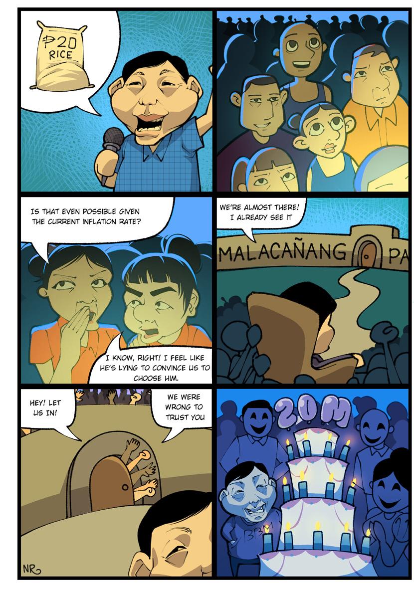 pesos per kilo of rice was a little overreaching, the overspending undermined his promise by rubbing into the people’s faces just how wrong they chose him. He could have ensured that the SONA expenses were minimal, given that he has yet to fulfill an election oath, at least show some modesty. But no, he chose the elite and not the public, so we collectively burn as a consequence of our actions.