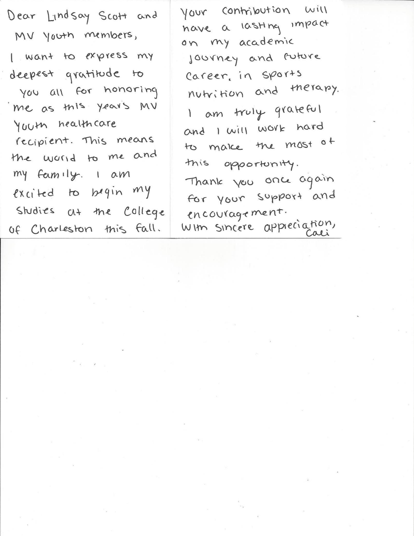 Wearegrateful for thesupport fromMVYouthand our Island Community!