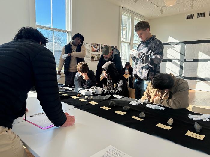 Beyondtheelementary years,wehavehostedbothmiddleandhighschool classeson researchvisitsto enrichtheir coursesof study APAfricanAmericanHistory students investigatedtheexhibit,Unfreedom,whiletheAmericanSignLanguageI & II classes cameto seeTheyWereHeard,about theChilmark Deaf Community Theclassroom wasaperfect spacetohost livelydiscussionsfollowingeachoneof theseexhibit tours