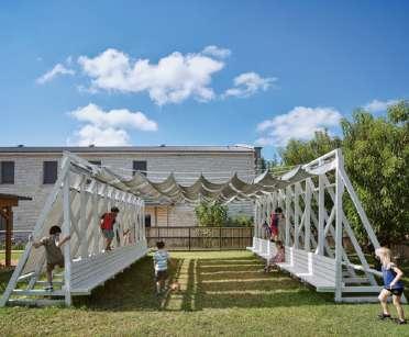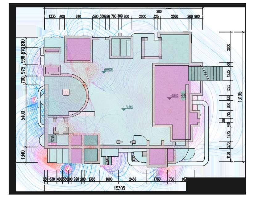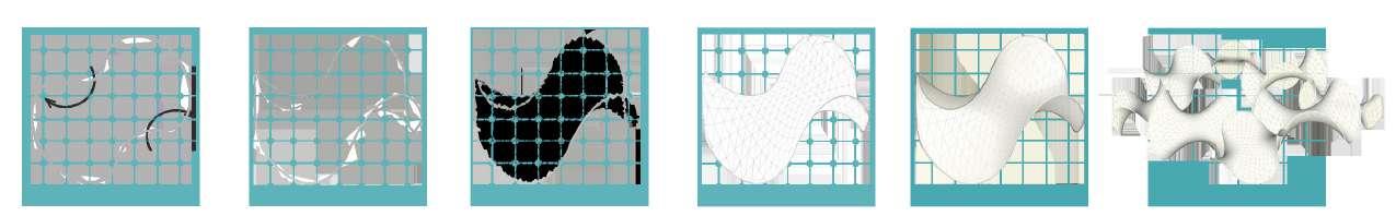 Extract the shape of the membrane structure in the experiment and perform deduction and transformation, generate a surface in the shape of a line, and copy multiple to get the membrane structure layer that finally adapts to the spatial layout.