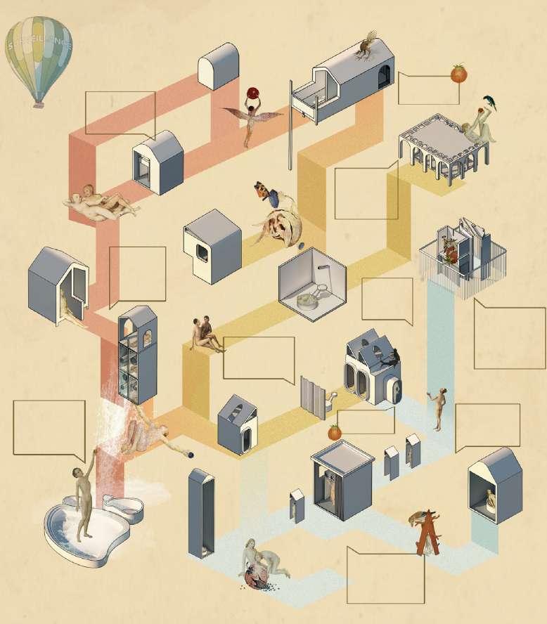 A non-sexist bathing space designed to promote human communication and confront the issue of their gender perception.