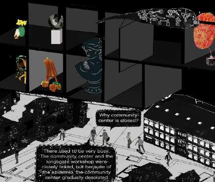 Project statement: Pandemic periods result in a 'decline' in urban vitality and the under-utilisation of urban space. More vacant land is often perceived as a sign of economic decline and is identified as inactive space. In this context, the effective use of unproductive community spaces can contribute to the sustainability of communities, streets and cities. The use of abandoned buildings, unused shops, open spaces, etc. can be offered to groups of organisations or individuals to engage in active commercial exchange activities, promoting the vitality of the local community and creating lasting economic and social value in the long term.