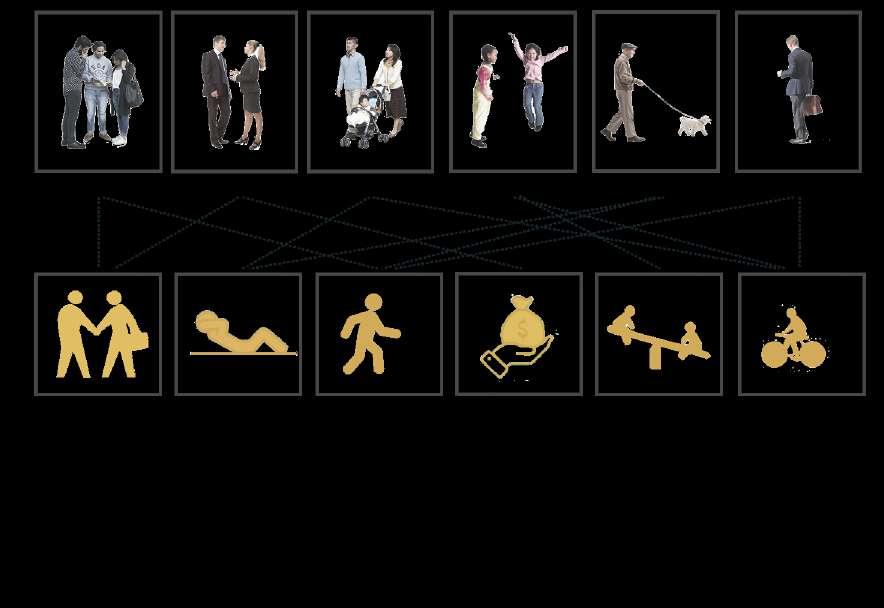 The main groups in the community are students, housewives, the elderly, commuters, vendors, and children. Students are mainly active after 6 PM, the elderly usually go out for exercise at 10 am, and commuters mainly go out at 8 am and return at 6 PM