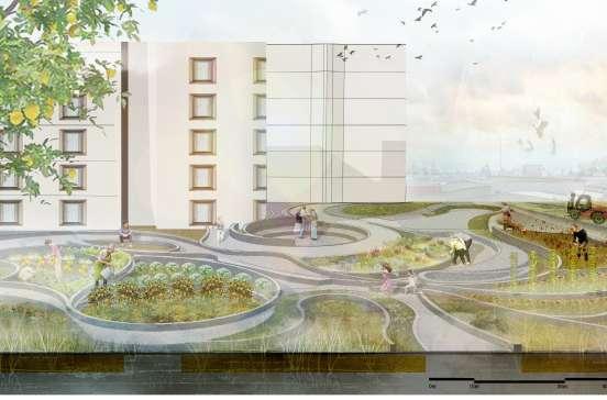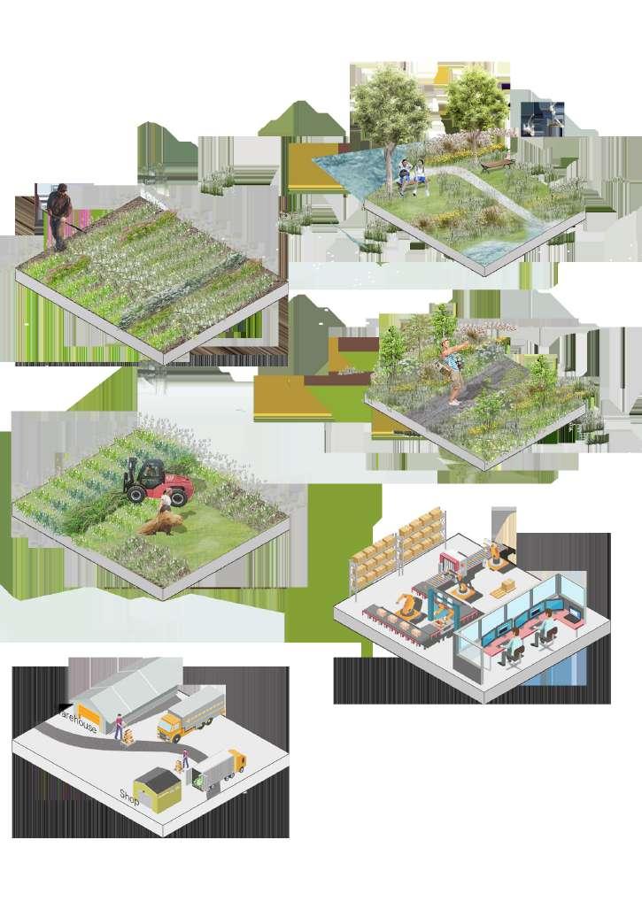 BACKGROUND In the context of urbanization, both natural and unnatural factors have strengthened the connection between cities, agriculture and people in the process of urban development. The urban expansion problem we are facing at this stage will inevitably cover some agricultural land, affecting the pattern and nature of the food system. To promote sustainable urban development and build a resilient community, I have initiated research and exploration in productive landscape design that created a self-sufficient modular farm system for the New Green Land community, mainly in terms of education, food production and distribution, and sustainability.