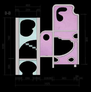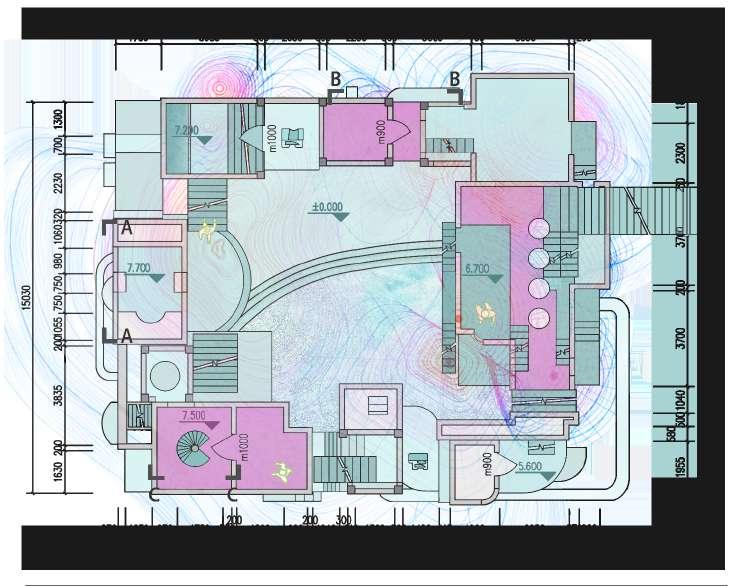 I want to achieve the integration of different personalities in the form of space. Red represents narcissists; the space is open to show their own charm; yellow represents ordinary people; the space is semi-obscured; they sometimes like to show themselves, sometimes like to hide themselves; blue represents selfabasement; the space is private; multiple obscured structures are staggered between the various spaces to reduce the visual communication between people in order to achieve self-communication.