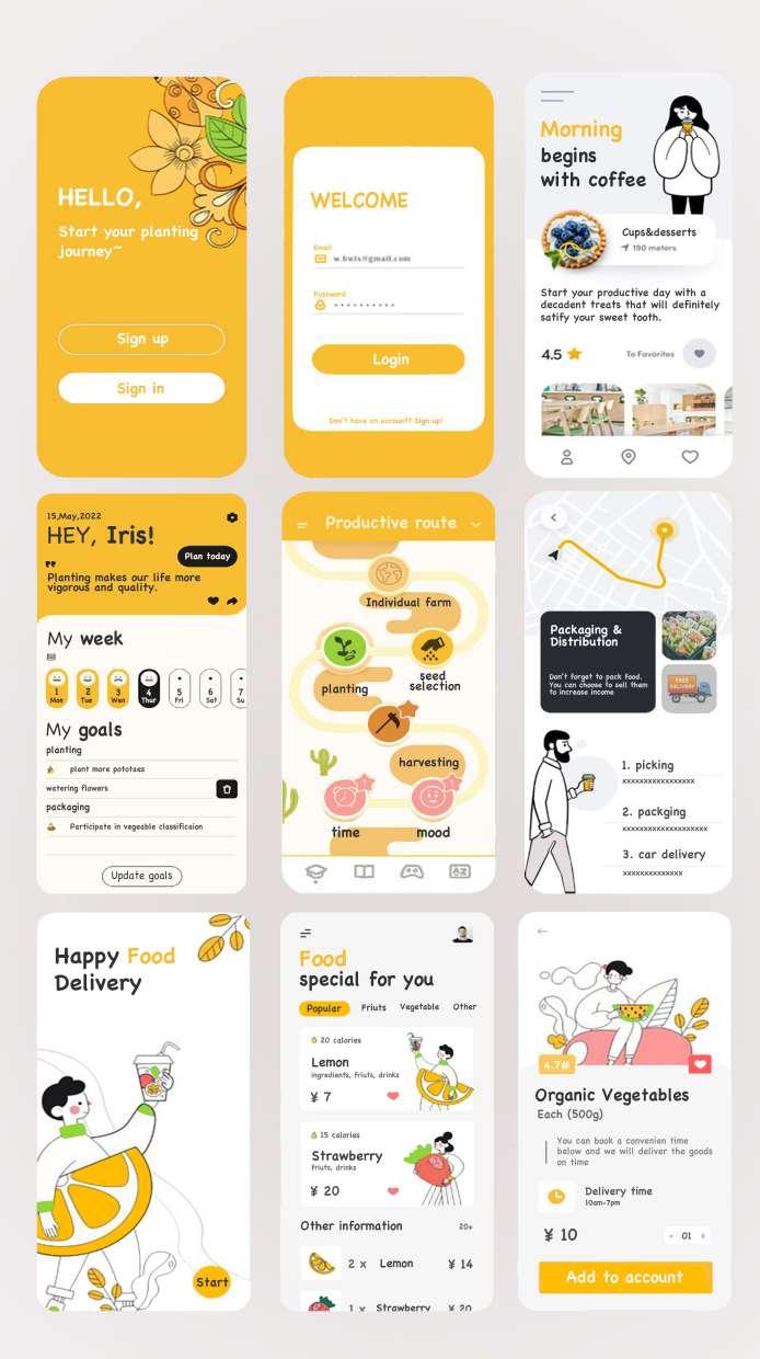 To observe the growth of crops, users can scan the crops in the app, and can observe the conditions, soil conditions, and maturity seasons required for crop growth in real time in the future; picking and harvesting on the harvesting day can be done with the help of tools rented by the farm. Families who want to increase their income can participate in the food packaging process to conduct food supervision and quality inspection; other users can place food orders on the app and the community trucks will be responsible for delivery, and they need to pay delivery fees to increase community income.