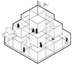 The generation of spatial volume is deduced in the form of points, lines and planes. Through experiments, it is concluded that the architectural space is a wrapped layout, represented by a square-shaped wire frame. The shape of the block is obtained through the deduction of the line, and the overall shape of the building is finally obtained.